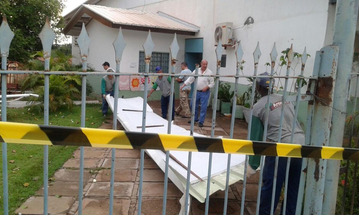 O prédio da creche municipal Renisea Guilhermette Barua passou por uma reforma há quase um ano, ocasião em que o teto foi reformado. A parte que foi levada pelo vento atingiu a sala de aula que atende os alunos do jardim um.