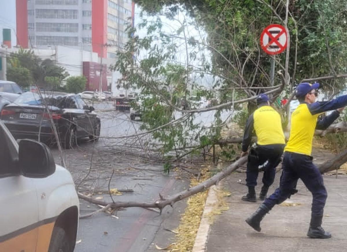 Como já noticiado pelo , a agentes de trânsito da Secretaria de Mobilidade Urbana (Semob) realizaram a retirada de troncos e galhos de árvore que caiu na avenida Miguel Sutil. Vendaval antes da chuva causou também a queda de um semáforo e destelhou um comércio.