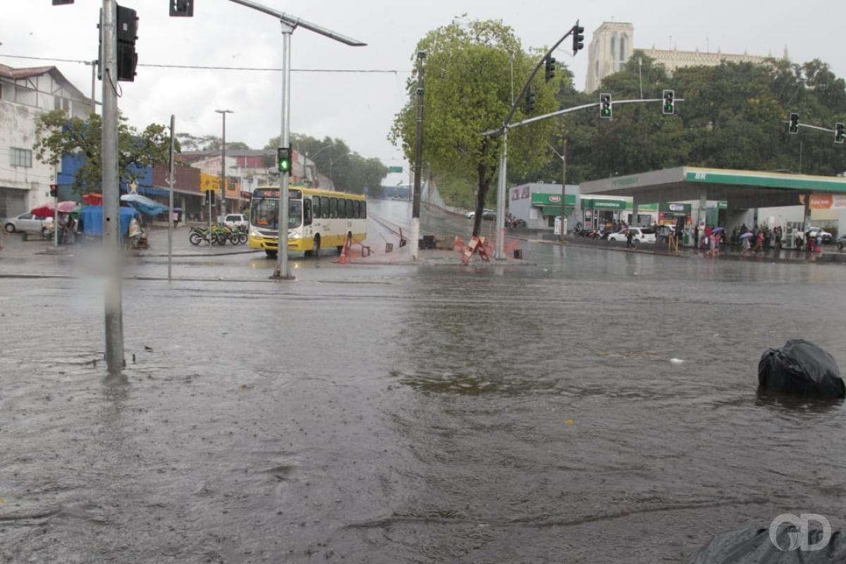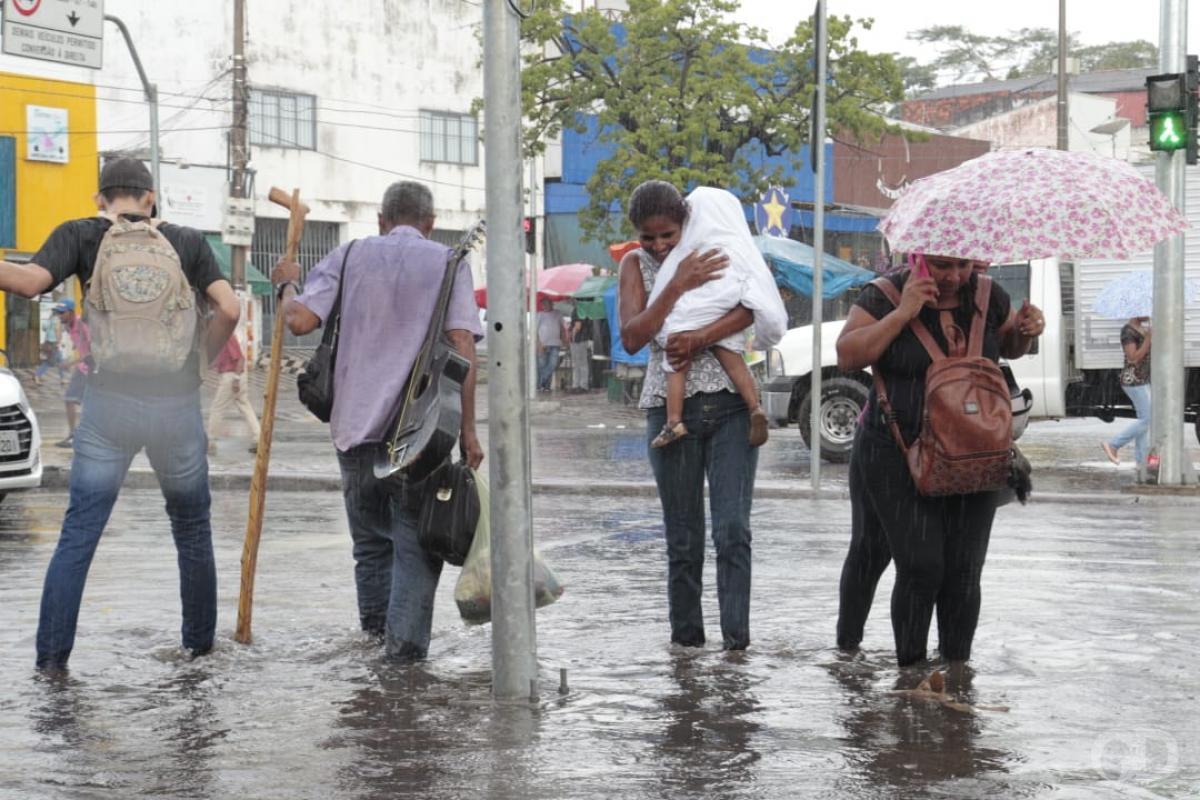 , pedestres caminharam pelo local com dificuldade, já que a água estava na altura do tornozelo. Na tarde desta segunda-feira (11), registro semelhante foi feito na avenida Archimedes Pereira Lima, também chamada de Estrada do Moinho.