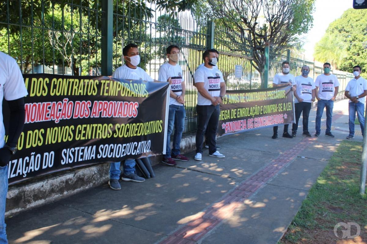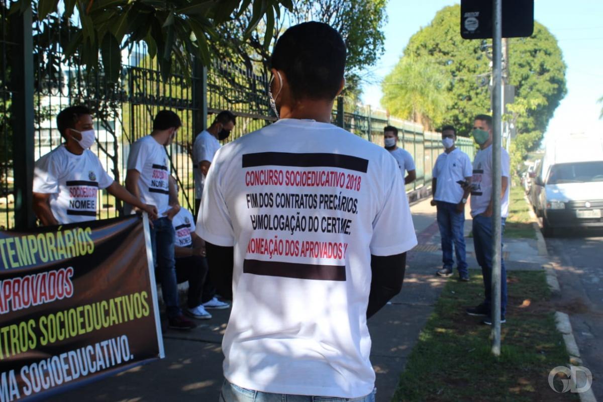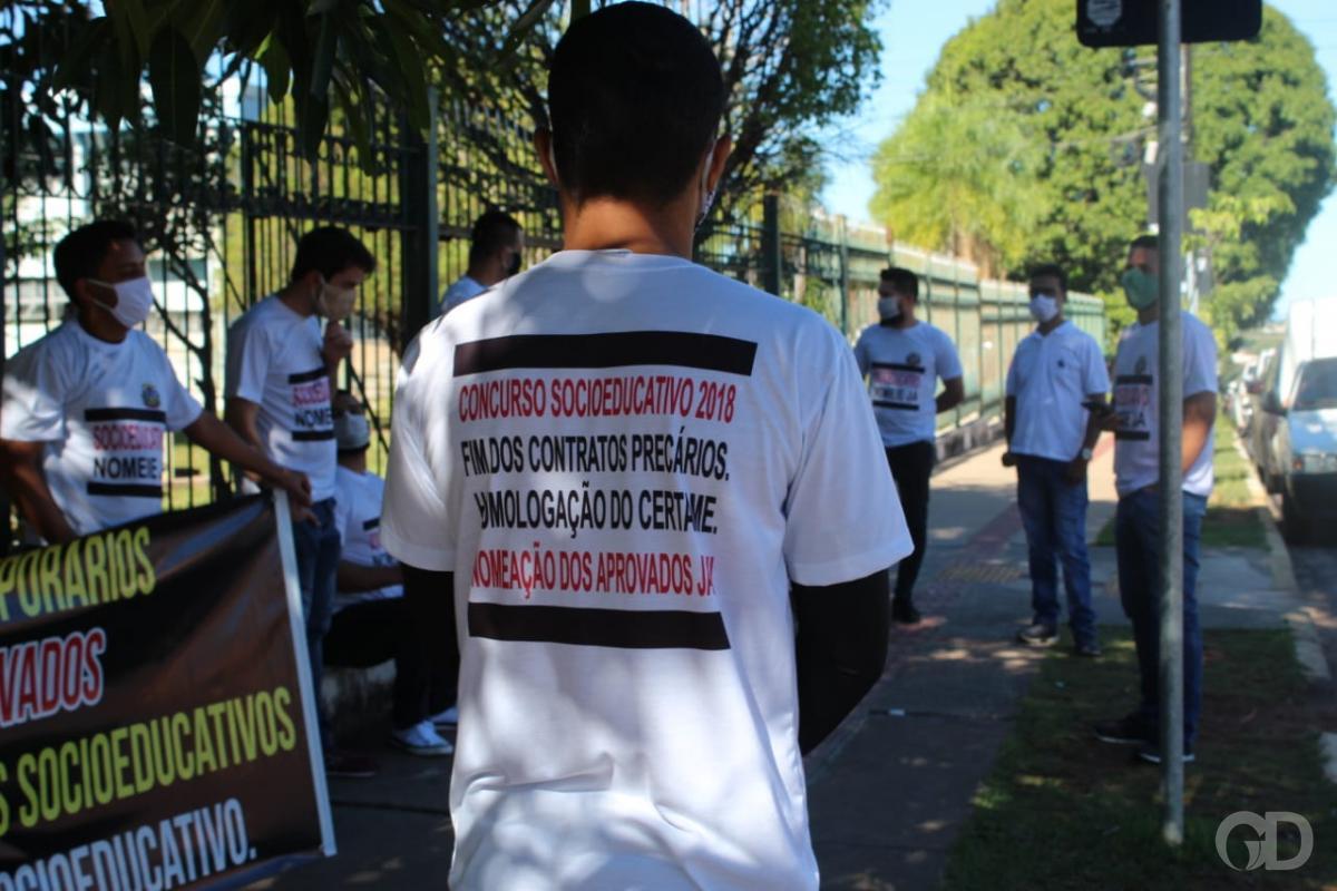 Concursados do cadastro reserva do sistema socioeducativo protestaram nesta tarde de terça-feira (26) contra os contratos temporários, além de reivindicar a nomeação dos aprovados, em frente à Secretaria de Estado de Segurança Pública (Sesp).