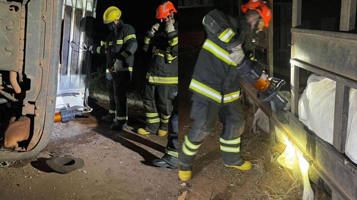 Os bombeiros fizeram cortes estruturais na carroceria, possibilitando a saída e o manejo dos animais. A ação foi realizada em colaboração com os funcionários da fazenda de origem do carregamento, que ficaram responsáveis pelos bois.
