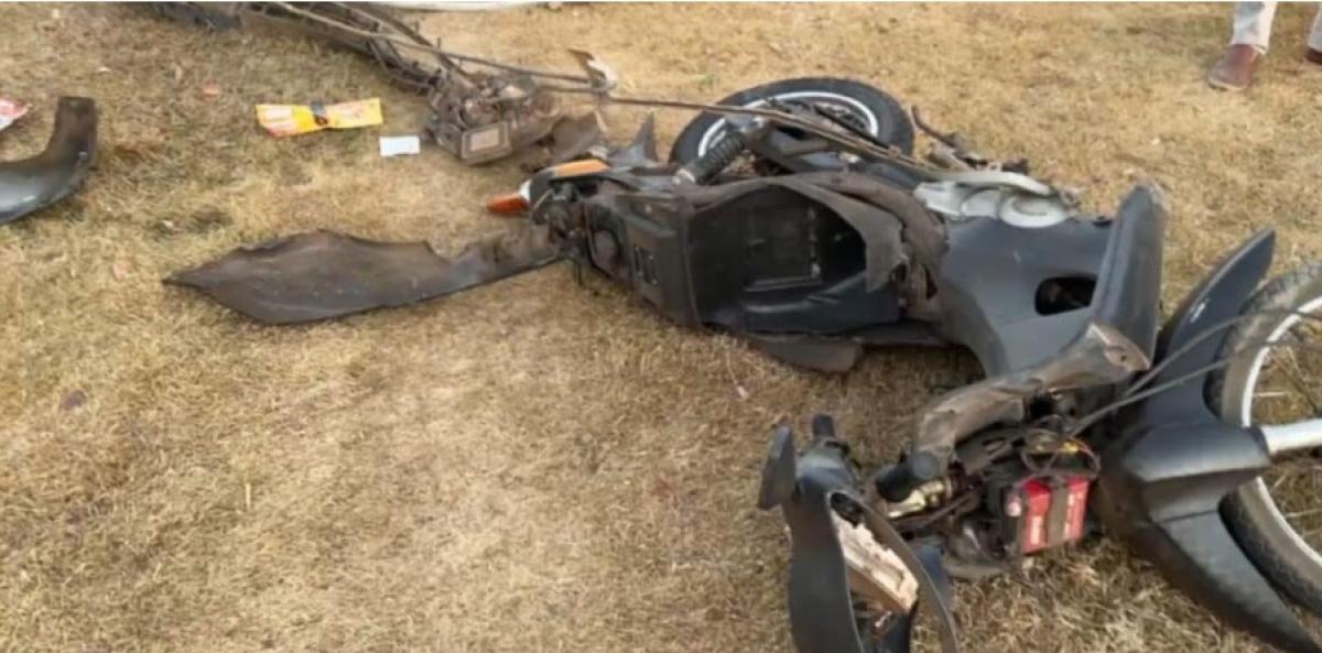 O carro e a moto ficaram totalmente destruídos.