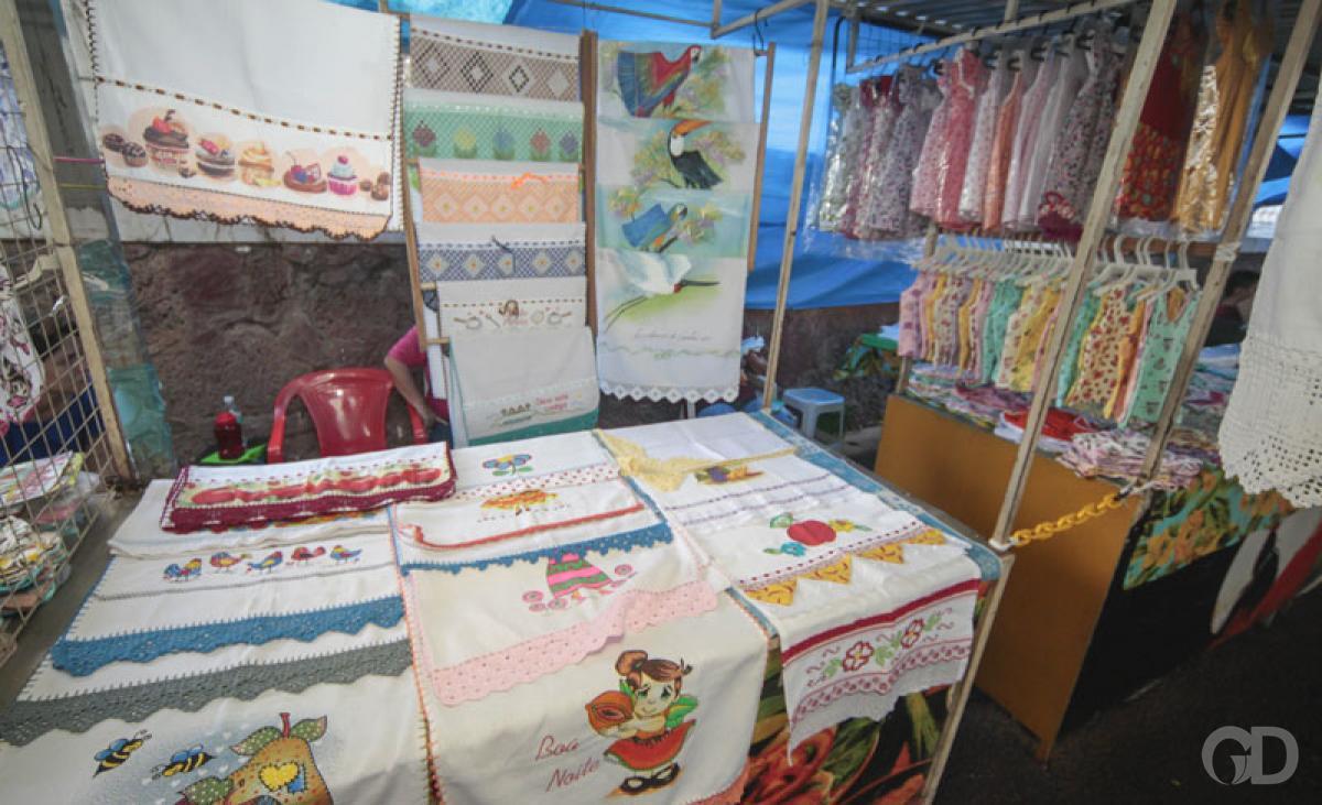 No caso de Eudilza Lopes, 66, o dinheiro que ganha com a venda de deus panos de prato é utilizado para comprar os 11 remédios que toma durante o dia. Das 9h às 17h, ela monta seu estande no beco de artesanatos ao lado da igreja Matriz, há 30 anos.
