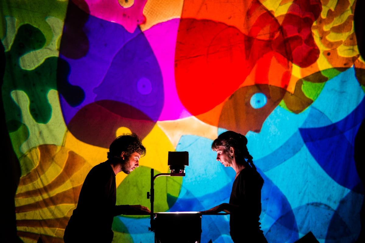O espetáculo 2 Mundos convida o espectador a entrar no espaço cênico, ampliando a percepção dos sentidos e vivendo de perto a performance dos atores sombristas. Nesta montagem a companhia aprofunda-se na linguagem do teatro de sombras moderno e utiliza a estética do cubismo para complementar a narrativa das imagens que contam a história. Sem o uso da palavra, apresenta um ambiente imersivo para aprofundar os diferentes sentimentos que atravessam as cenas e chegar a um clima de intimidade com o espectador.