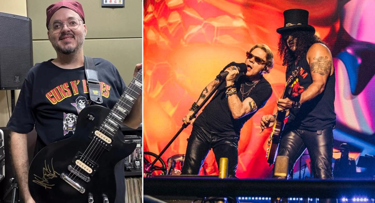 O guitarrista cuiabano Renato Tadeu Vaz Curvo, 39, realizou um grande sonho de adolescência ao ter sua guitarra assinada por Axl Rose, vocalista e líder da banda Guns N’ Roses. Para conseguir esse presente, ele precisou ter paciência, que valeu cada minuto de espera. O músico lembra que a banda sempre foi uma referência e inspiração.