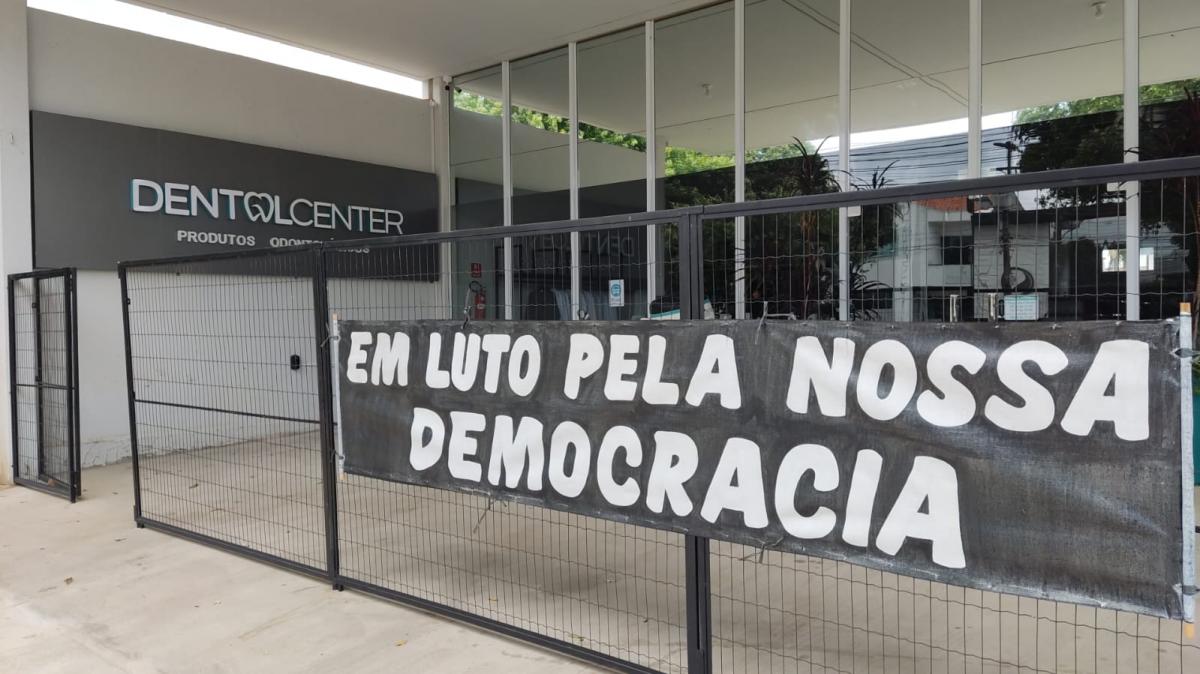 Com placas de "Luto pela democracia" nas portas, comércios de Sinop deverão ficar fechados até domingo (27). A decisão em torno da mobilização foi feita durante a noite de segunda-feira (21) na sede da Câmara de Dirigentes Lojistas (CDL) do município.