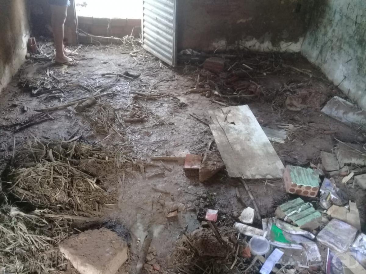 A água que chegou a bater no meio da parede da casa veio acompanhada de esgoto, entulhos e muito lixo. A diarista conta que sentiu muito medo no momento que viu tudo desmoronando.