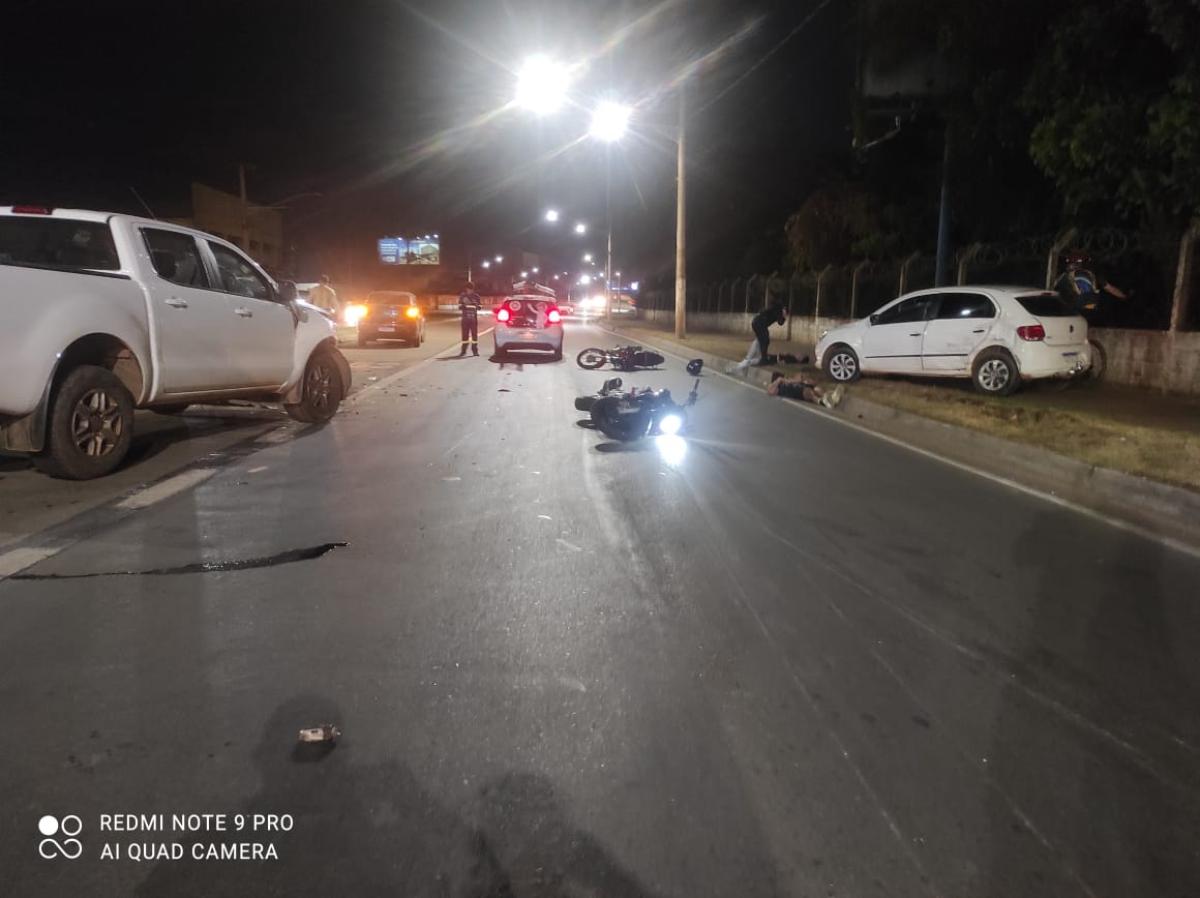 Dois homens ficaram feridos em um acidente envolvendo duas motocicletas, na noite de segunda-feira (21), na avenida João Ponce de Arruda, em Várzea Grande.