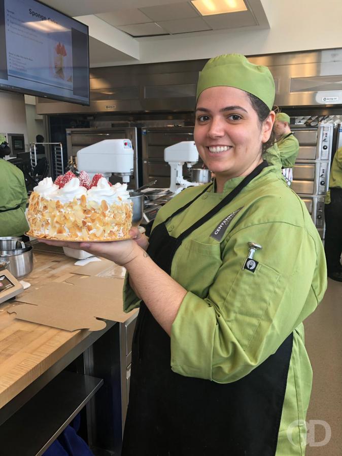 Ela explica que o curso tem como base as habilidades fundamentais de panificação e confeitaria, criação de menus, compra, planejamento ou execução, gerenciamento – ferramentas essenciais para converter seu amor pela área em sucesso nos negócios futuros. “A confeitaria sempre foi uma paixão, por isso a escolha do curso. Já que tínhamos mudado tudo por que não mudar a profissão?? Tenho aprendido muito sobre pães e sobremesas tradicionais como macarons e mil folhas”.