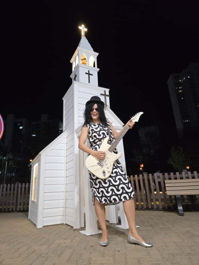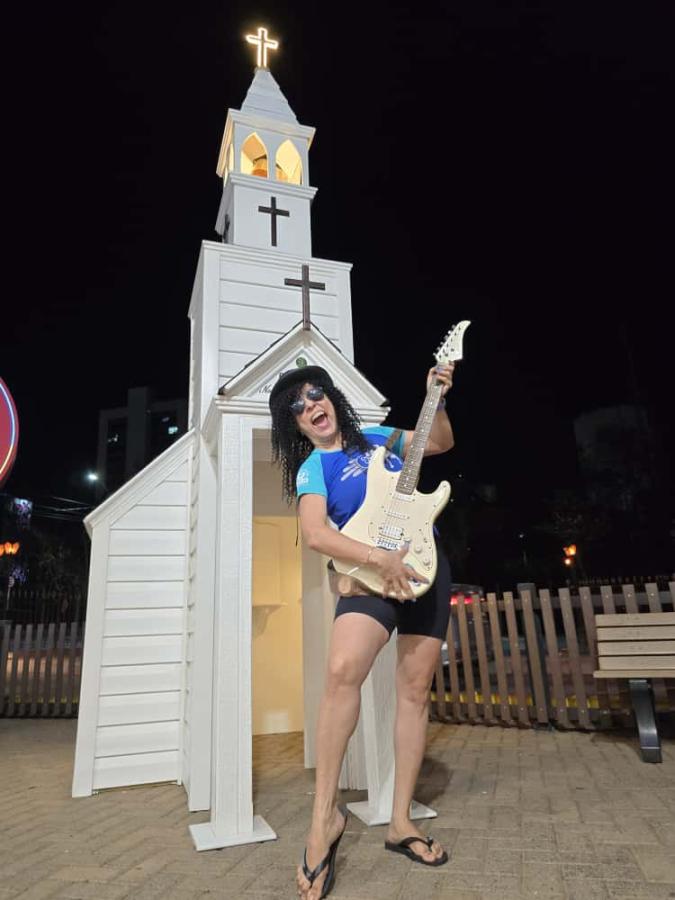 que a ideia de instalar a capela surgiu logo com o anúncio da possibilidade da vinda a banda para a capital mato-grossense. “Estamos nos preparando, pois vem pessoas do Brasil todo para assistir o show. Inclusive o nosso movimento aumentou nesse final de semana, não tinha vaga no estacionamento. Tudo porque são pessoas fãs da banda. Temos clientes, amigos que tem tudo da banda, colecionam todos os LPs e a gente resolveu montar o cenário. Muitas pessoas vêm para tirar foto, é impressionante como você vê a grandiosidade da banda em relação à quantidade de fãs”, diz.