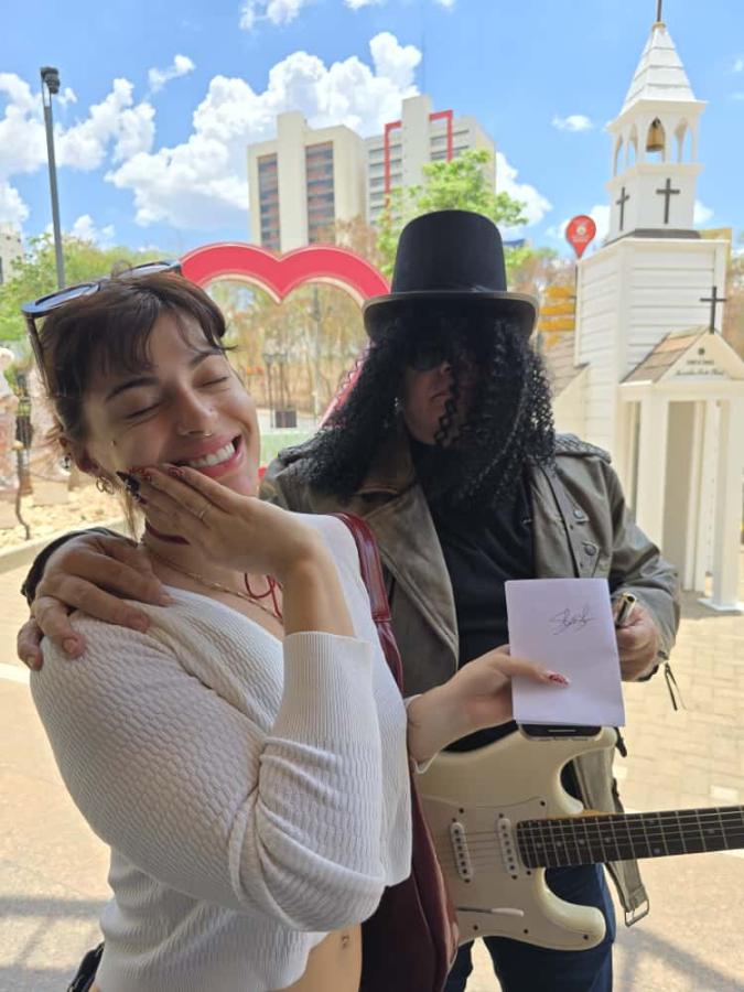 A psicóloga Anny Caroliny De Lima Rodrigues passava pelo local durante a reportagem e não deixou de fazer sua foto na igreja. Fã de heavy metal, já perdeu as contas de quantos shows foi este ano, porém, será seu primeiro do Guns n’ Roses. Acostumada a viajar para a região sudeste para assistir apresentações das bandas, espera que a oportunidade promova a vinda de outros grupos para Cuiabá.