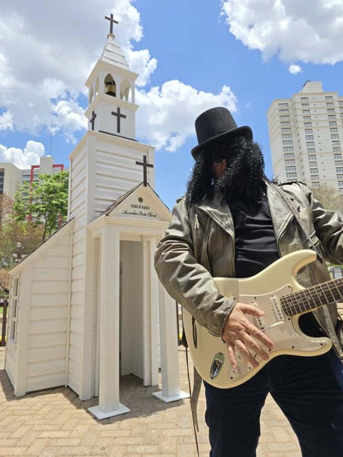 O atrativo é uma réplica da famosa capela do clipe da canção November Rain, que inclusive toca a todo instante a música para que os amantes da banda fiquem ambientados e tirem fotos, façam vídeos no espaço, com direito a guitarra, camiseta da banda e peruca com cartola inspirados no icônico guitarrista da banda, Slash, que toca em meio a poeira do deserto e a ventania no videoclipe que é um dos mais vistos da história do YouTube, com mais de 2 bilhões de views.