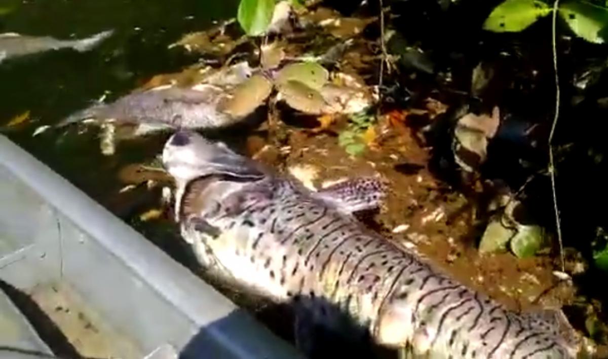 Atualizada às 10h48 Pescadores que navegavam pelo rio Teles Pires no fim de semana, denunciaram a morte de toneladas de peixes boiando na água. A mortandade atinge todas as espécies existentes no local e começou a ser percebida no sábado (15). Os autores das filmagens acusam a Usina Hidrelétrica de Sinop pelo dano ambiental.
