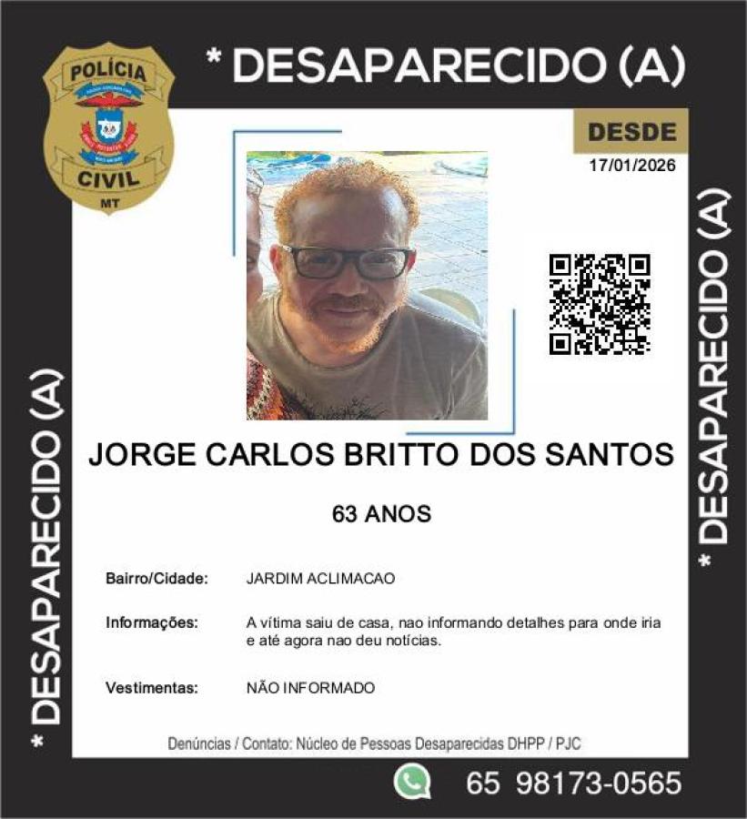 A esposa de Jorge contou à polícia que ele ia para o Coxipó do Ouro, porém, não manteve mais contato. O aparelho de celular está desligado.