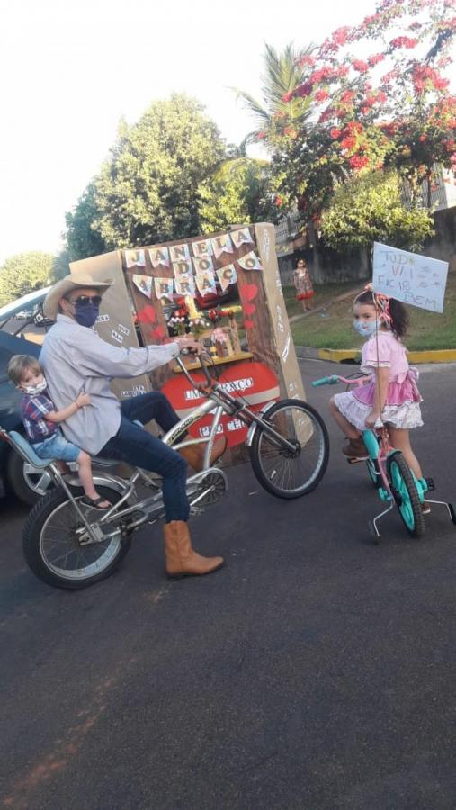 Seja de carro, moto ou até mesmo de bicicleta, valia quase tudo para participar da festa, que atraiu 60 famílias. A unidade escolar atende crianças de 3 a 5 anos e precisou suspender as atividades por causa da pandemia da covid-19.