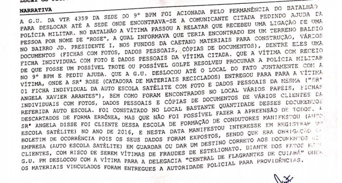 No boletim de ocorrência, a PM alerta que era obrigação da autoescola guardar ou dar destinação correta à documentação, decido ao risco de as pessoas ali expostas sofrerem golpes de estelionato.