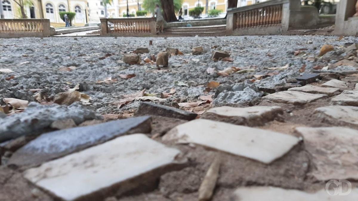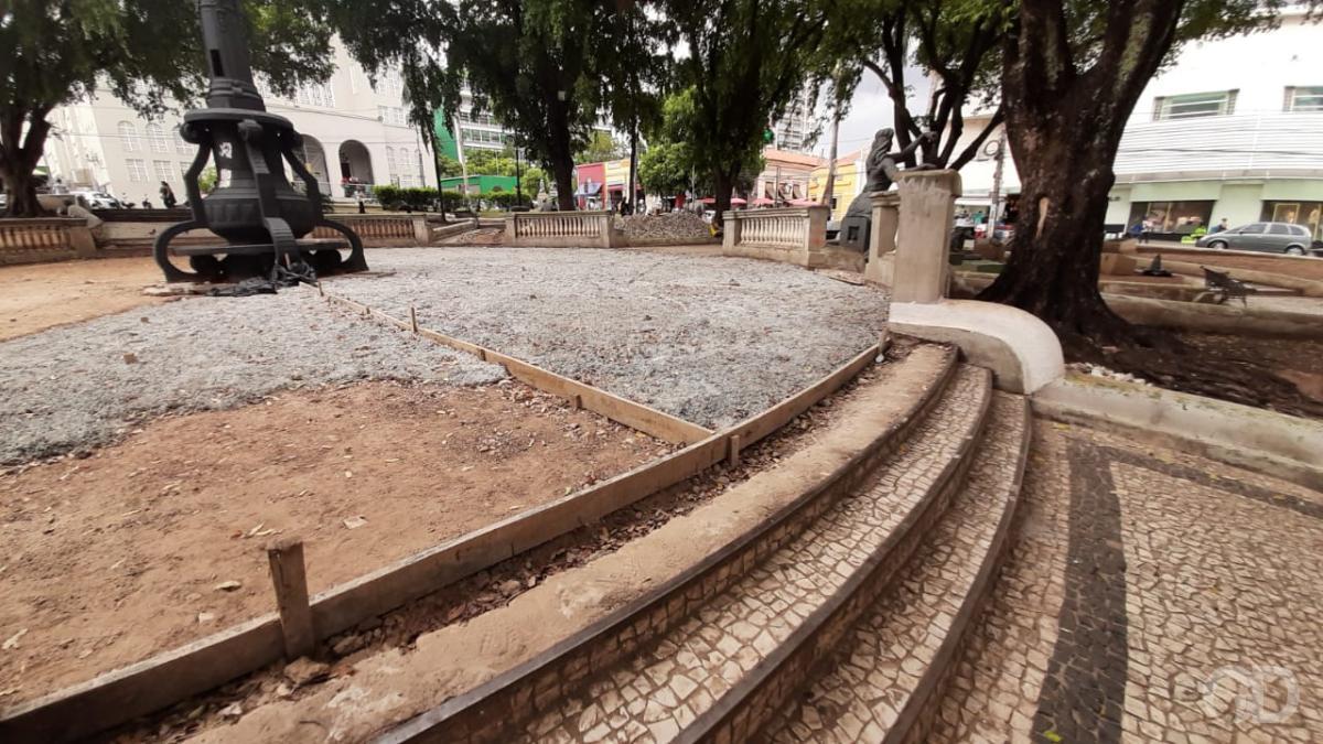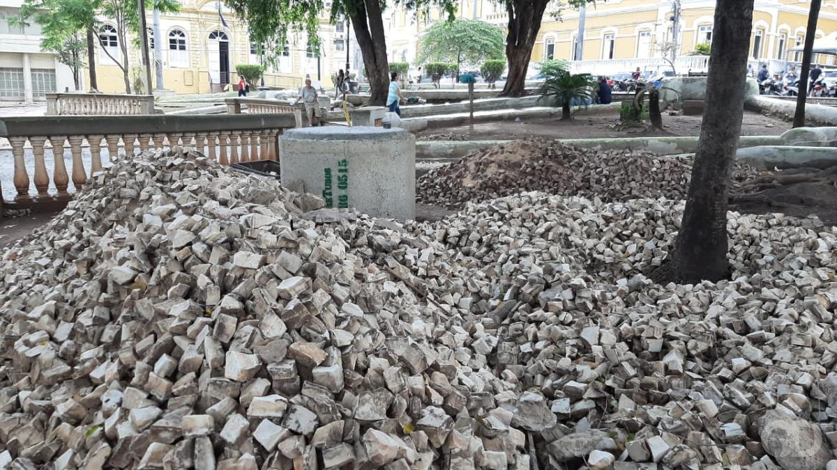 Há pelo menos um mês, quem passa pela Praça da República, na região central de Cuiabá, percebe um amontoado de pedras portuguesas retiradas do chão, que está metade em cimento e outra metade em terra. Isto porque a obra de revitalização foi interrompida devido à falta de autorização do Instituto do Patrimônio Histórico e Artístico Nacional (Iphan).