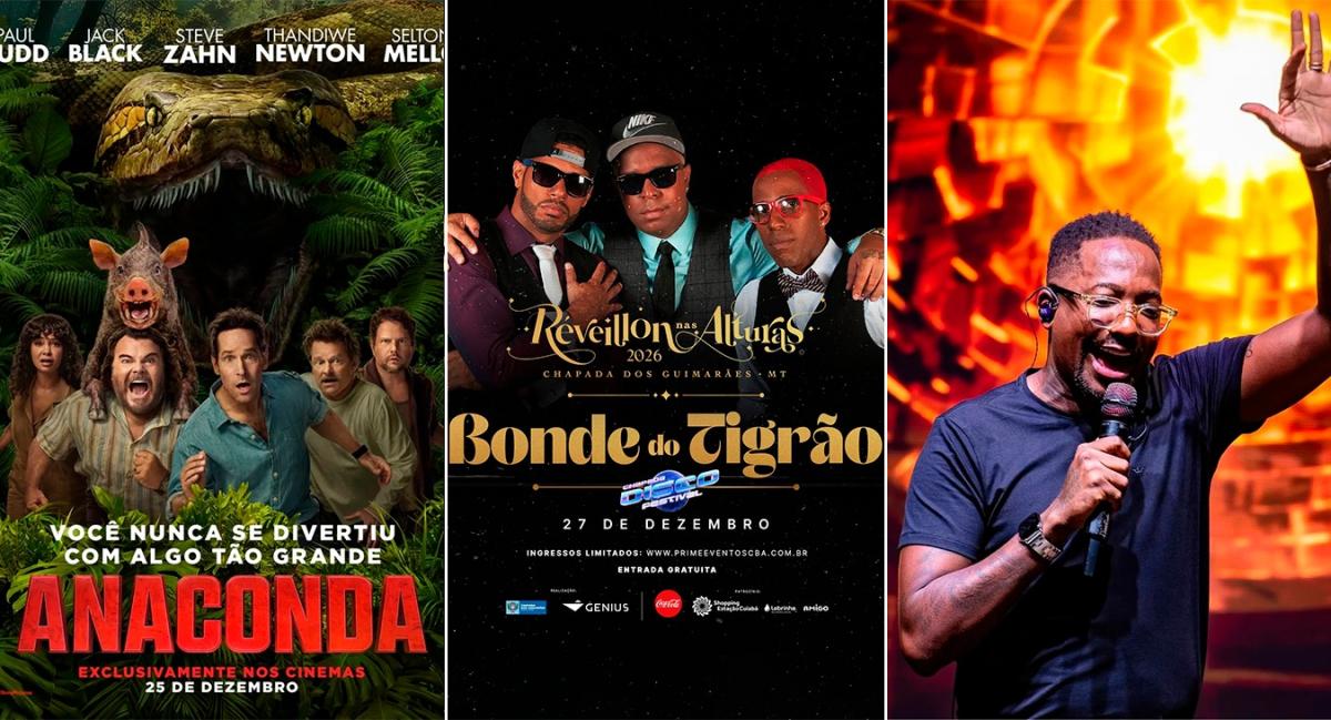 Com a virada de ano se aproximando, o fim de semana na baixada cuiabana será recheado de opções com atrações nacionais, estreias no cinema e programações regionais. O destaque vai para o cantor Mumuzinho que se apresenta no domingo (28), no festival Réveillon Nas Alturas, em Chapada dos Guimarães (67 km ao Norte).