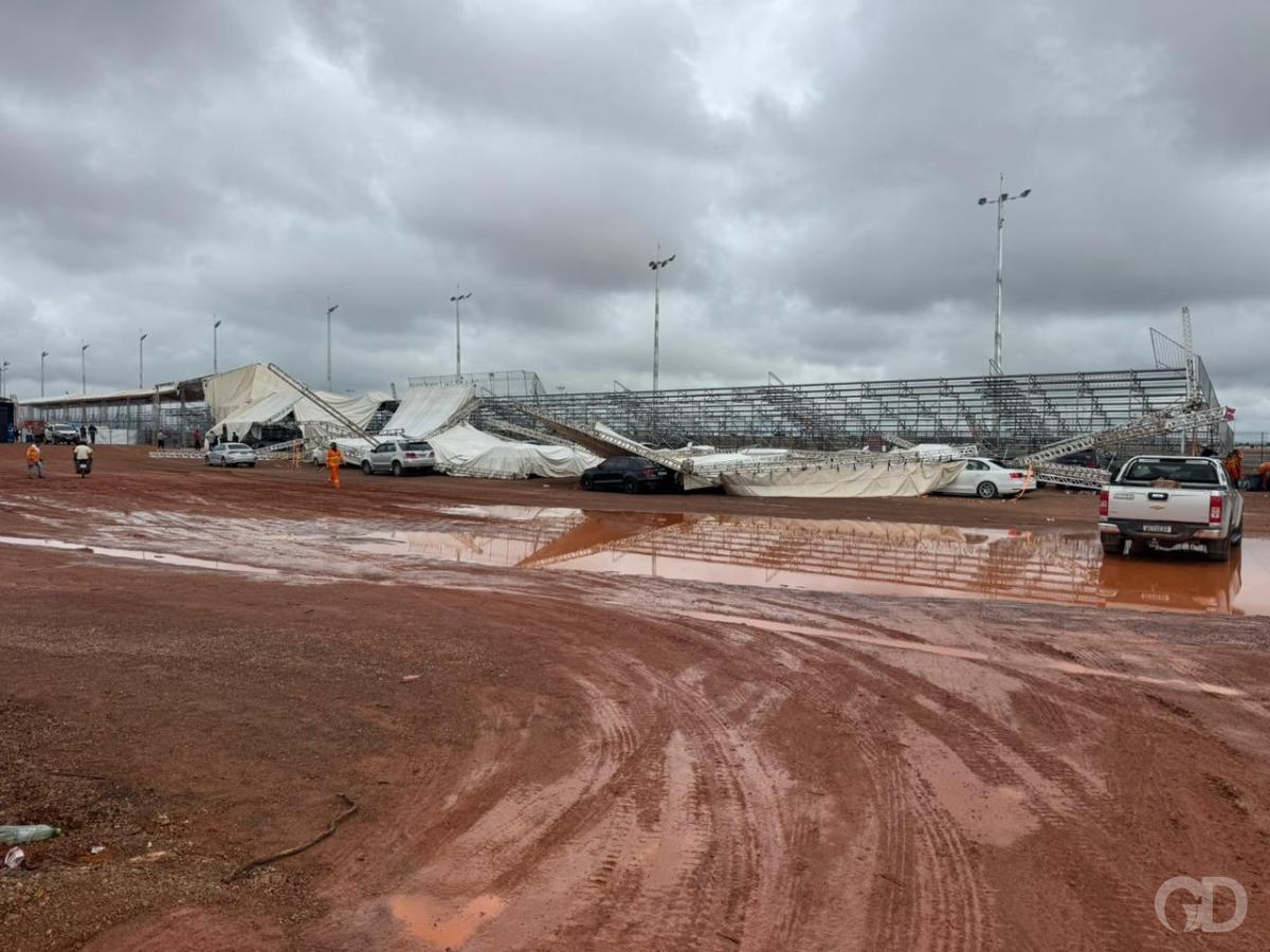 O forte vendaval que atingiu o Autódromo Internacional do Parque Novo Mato Grosso, na noite dessa quinta-feira (13), provocou o desabamento de parte da arquibancada sul e deixou torcedores em situação de pânico. Mais do que os danos materiais, quem estava no local descreveu um cenário de desespero e ausência de orientação durante a ventania.