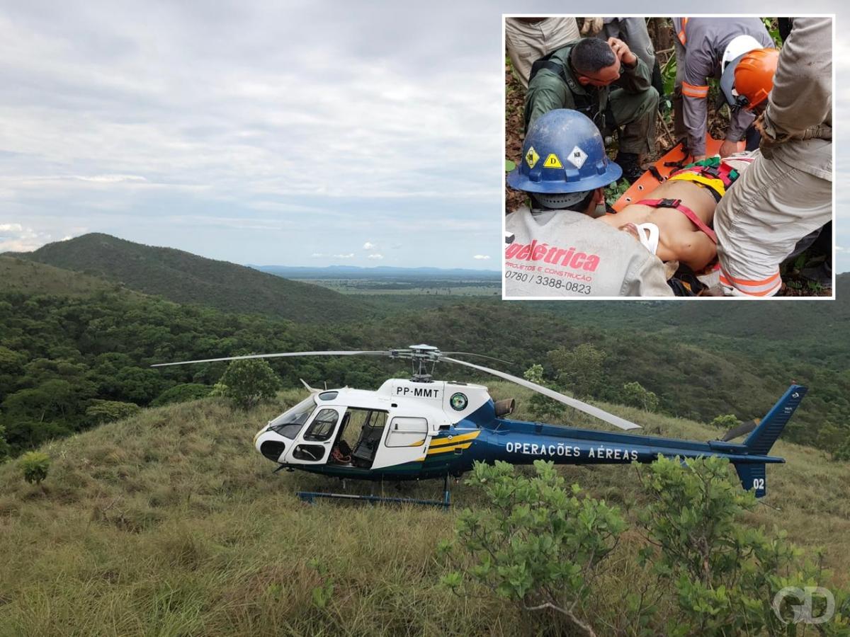 Helicóptero do Centro Integrado de Operações Aéreas (Ciopaer) resgatou, na tarde de quinta-feira (1), funcionário da Energisa, concessionária de energia de Mato Grosso, na região de mata do Mirante, em Chapada dos Guimarães (67 km ao Norte de Cuiabá).