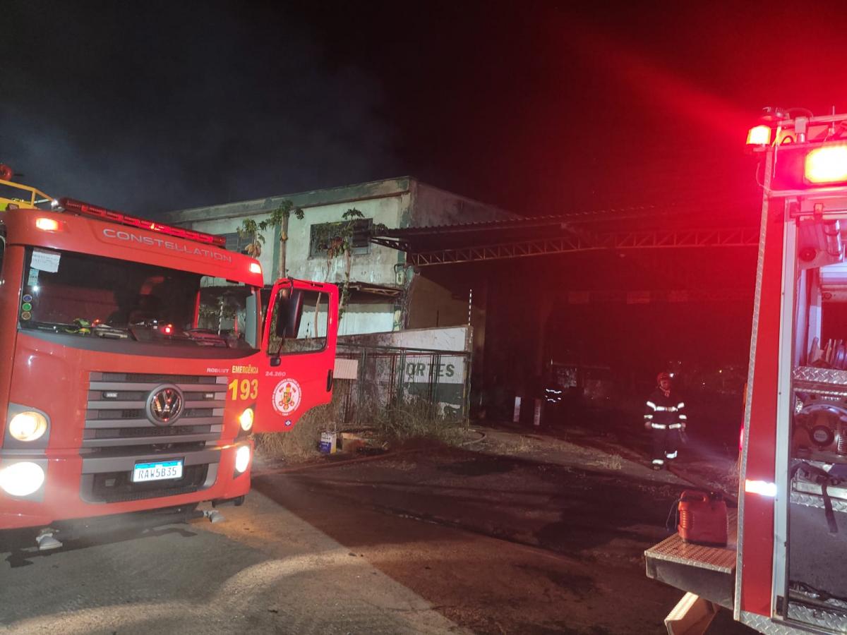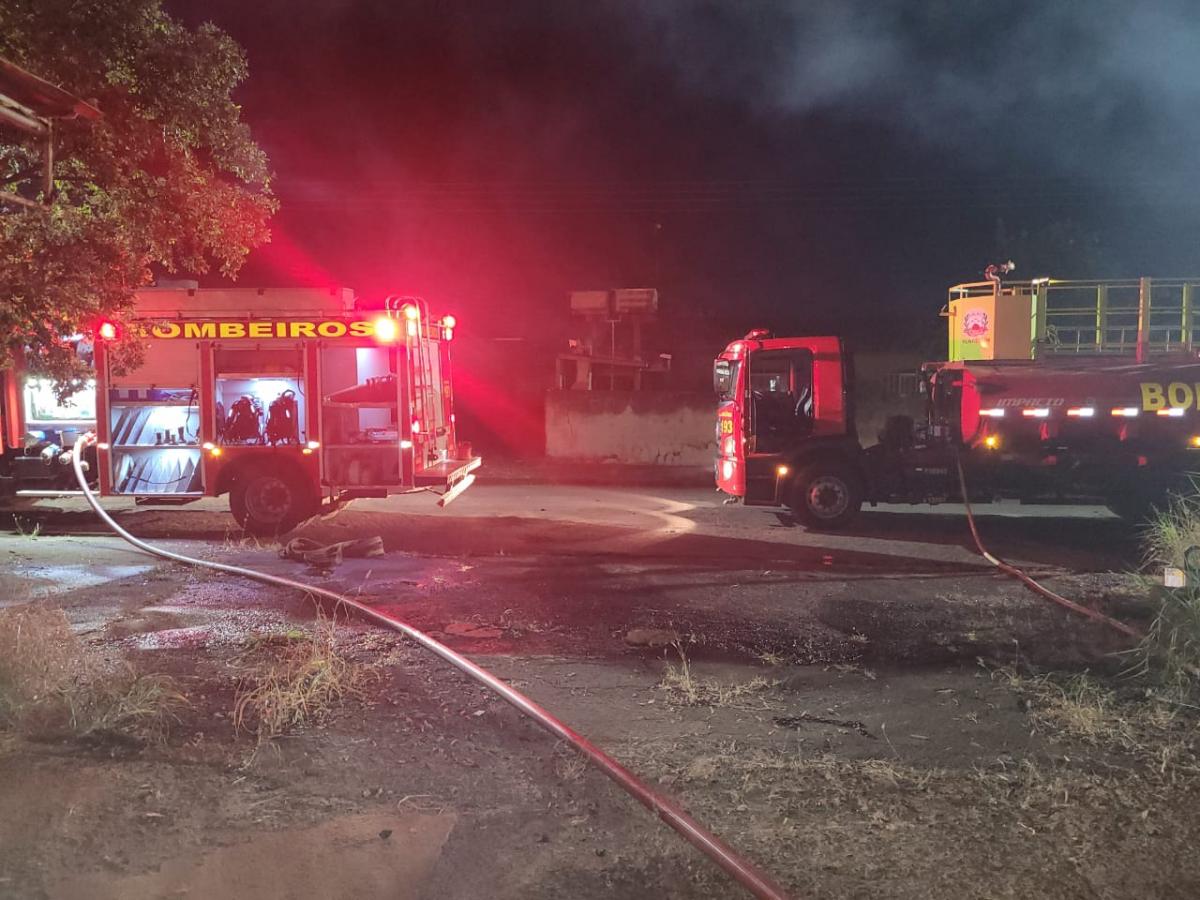 Incêndio de grandes proporções atingiu uma antiga garagem de ônibus, na noite desse domingo (9), em Tangará da Serra (239 km a médio-norte de Cuiabá).