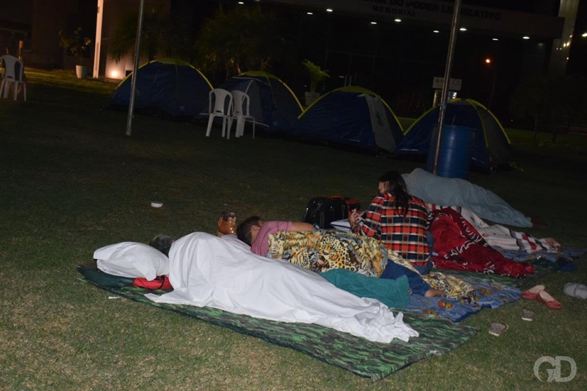 Os grevistas dormiram em barracas instaladas na frente da Casa de Leis e também nas dependências da Assembleia, com colchonetes e camas improvisadas.
