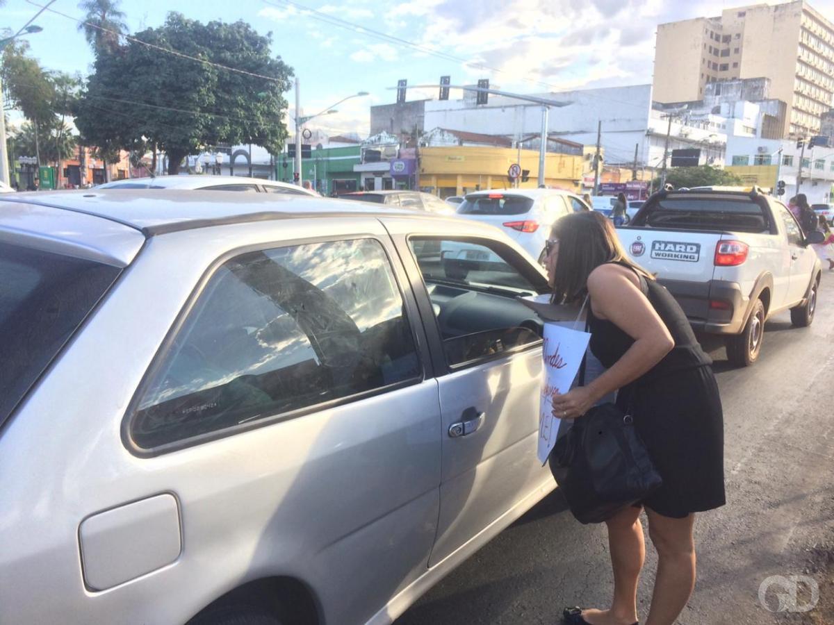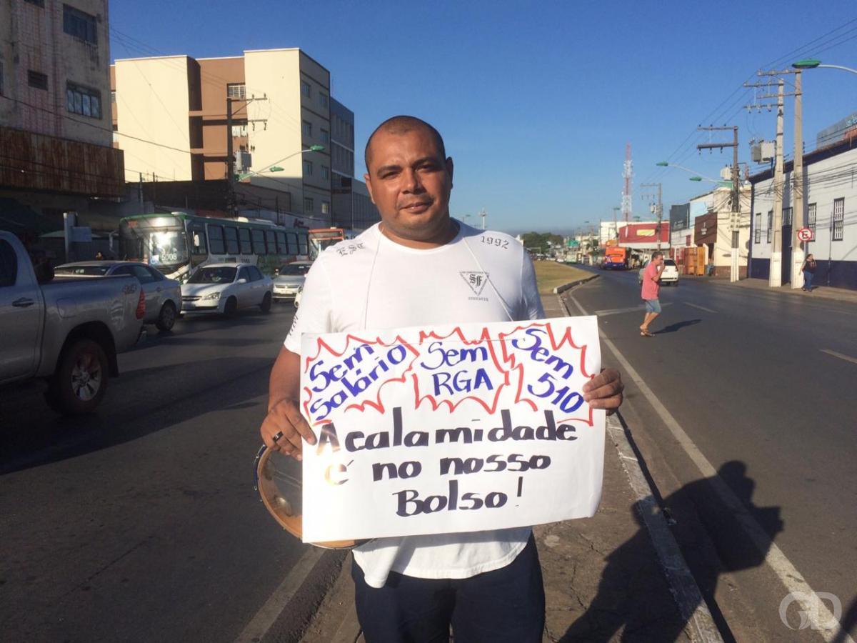 Atualizada às 09h37 - Com faixas, cartazes e frases de ordem, manifestantes abordam veículos que passam na avenida Prainha e na Isaac Povoas, em Cuiabá, na manhã de quarta-feira (3). Durante o ato os participantes pedem dinheiro aos motoristas que passam pela via. O objetivo é arrecadar fundos para ajudar os servidores que não irão receber salários em julho, por causa do corte de ponto anunciado pelo governo.