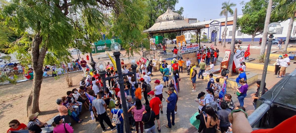 Sindicatos, central sindical, universidades, associações diversas, Fóruns, comunidades, pastorais e Igrejas, se uniram no ato realizado por meio de uma caminhada que começou às 7h30, na Praça do Rosário e seguiu até a Praça Ipiranga.