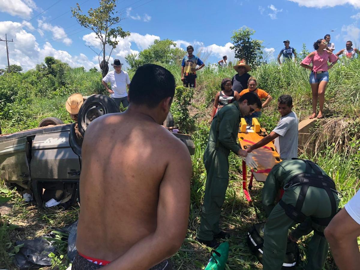 Um senhor de 72 anos saiu da estrada e capotou, próximo à comunidade de Porto de Fora.