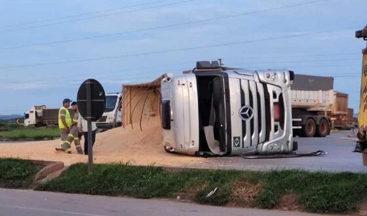 Ao chegar no local, testemunhas relataram que o condutor realizava o contorno quando perdeu o controle do veículo. Ele tombou no meio da pista e a carga ficou espalhada.