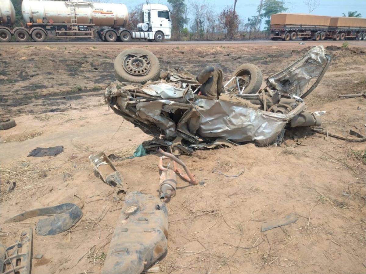 Um homem ficou gravemente ferido após colidir seu veículo contra uma carreta, na tarde de domingo (11), na BR-163 em Sinop (500 km ao norte de Cuiabá). A colisão fez o carro capotar e com o impacto, a vítima fosse arremessada do veículo, que ficou totalmente destruído.