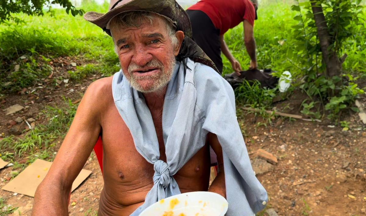 Vivendo em vulnerabilidade social e ganhando pouco mais de R$ 60 por dia com trabalhos informais, Don Moacir da Silva, 70, é uma das vozes que representa a esperança por condições de vida melhores. Ele é uma das pessoas que recebe marmitas na rotatória da rodoviária de Cuiabá, onde barracas e tendas improvisadas abrigam diversas pessoas em situação de rua.