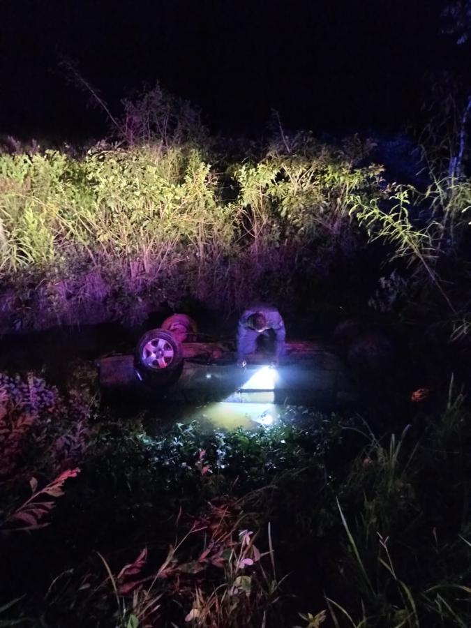 Ao chegar no local, foi constatado que o idoso trafegava pela 'Estrada do Ipê' quando perdeu o controle do veículo e capotou, caindo em uma vala alagada às margens da via.