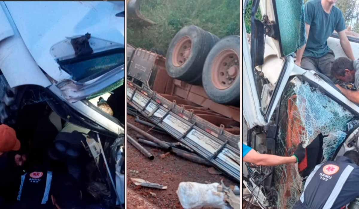 Uma equipe do Serviço de Atendimento Móvel de Urgência (Samu) acionou a Polícia Civil após populares encontrarem o caminhão Volvo Truck tombado.
