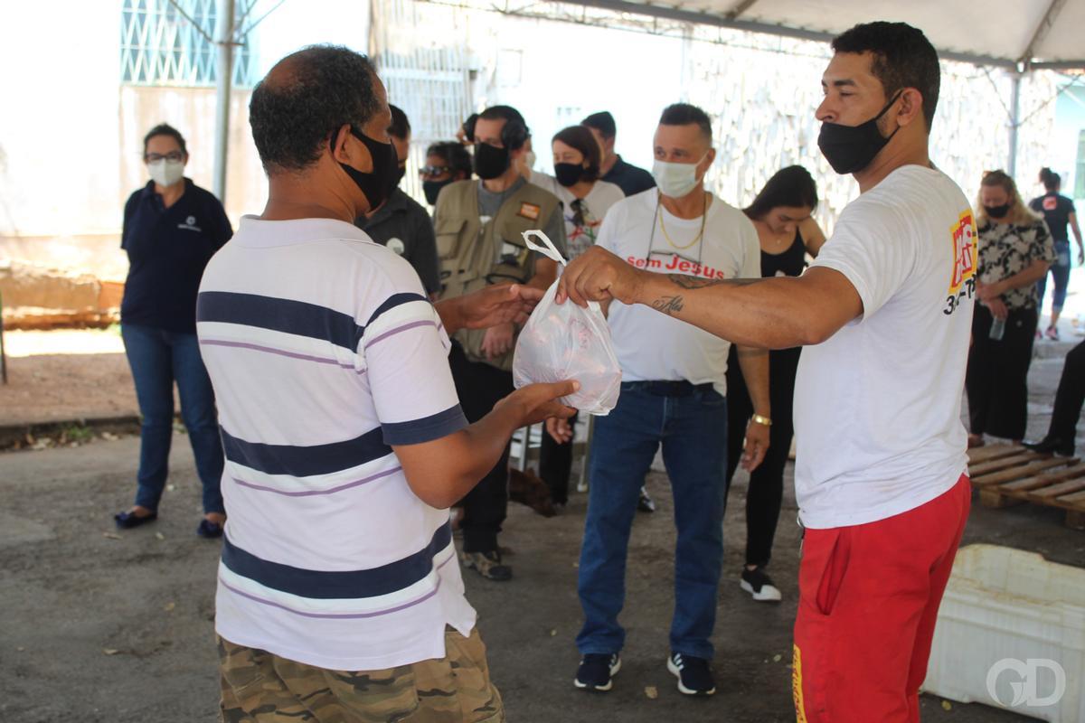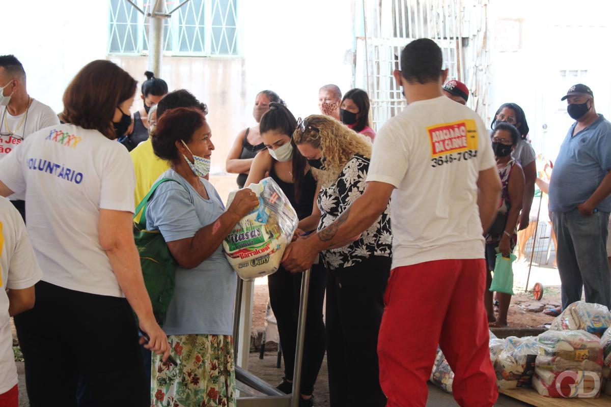 Nesta segunda-feira (30) uma grande ação foi realizada para doação de sacolões, juntamente com ossinhos, a pessoas previamente cadastradas, contudo são muitas pessoas precisando de ajuda, acima das que estava registradas para receber os donativos.