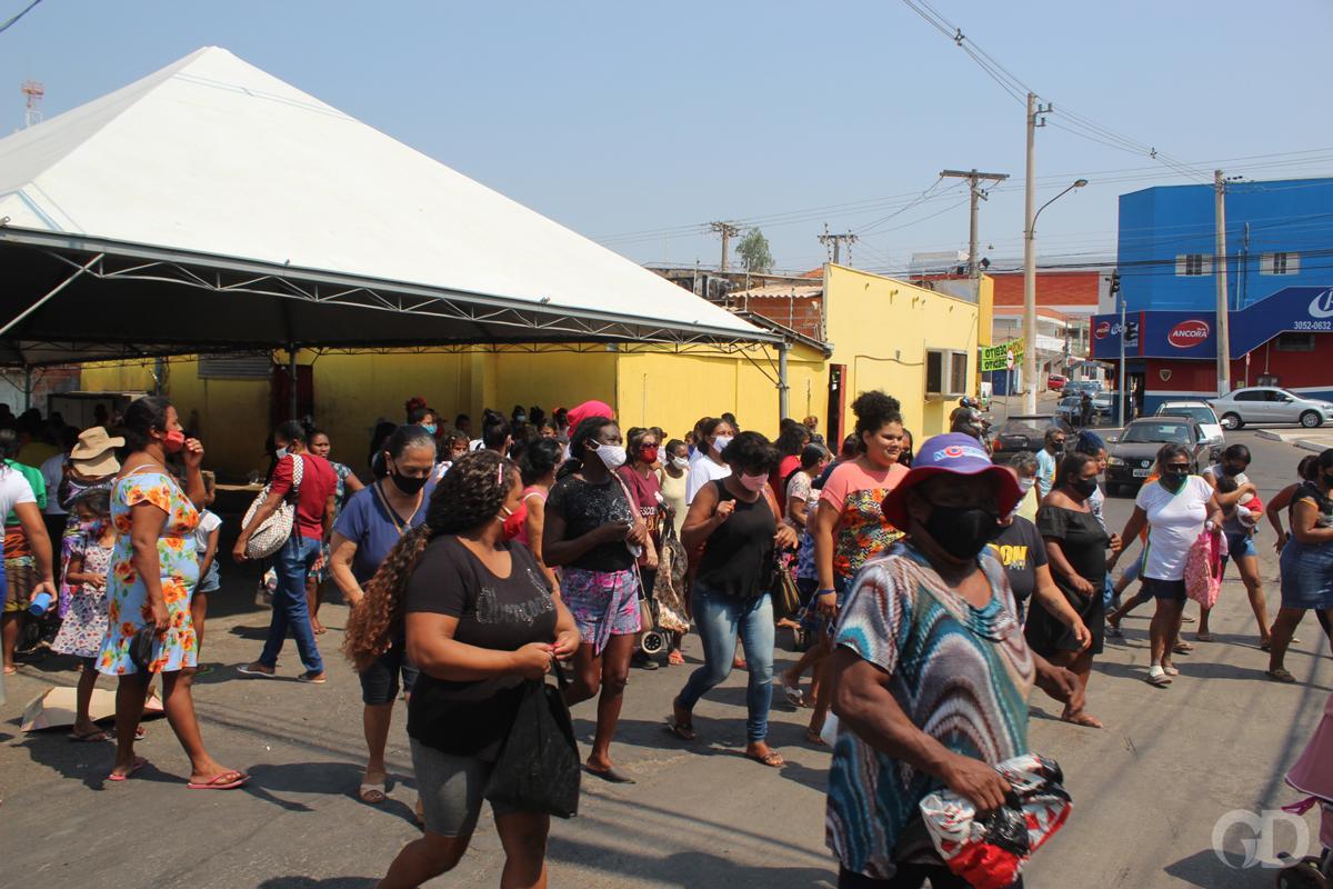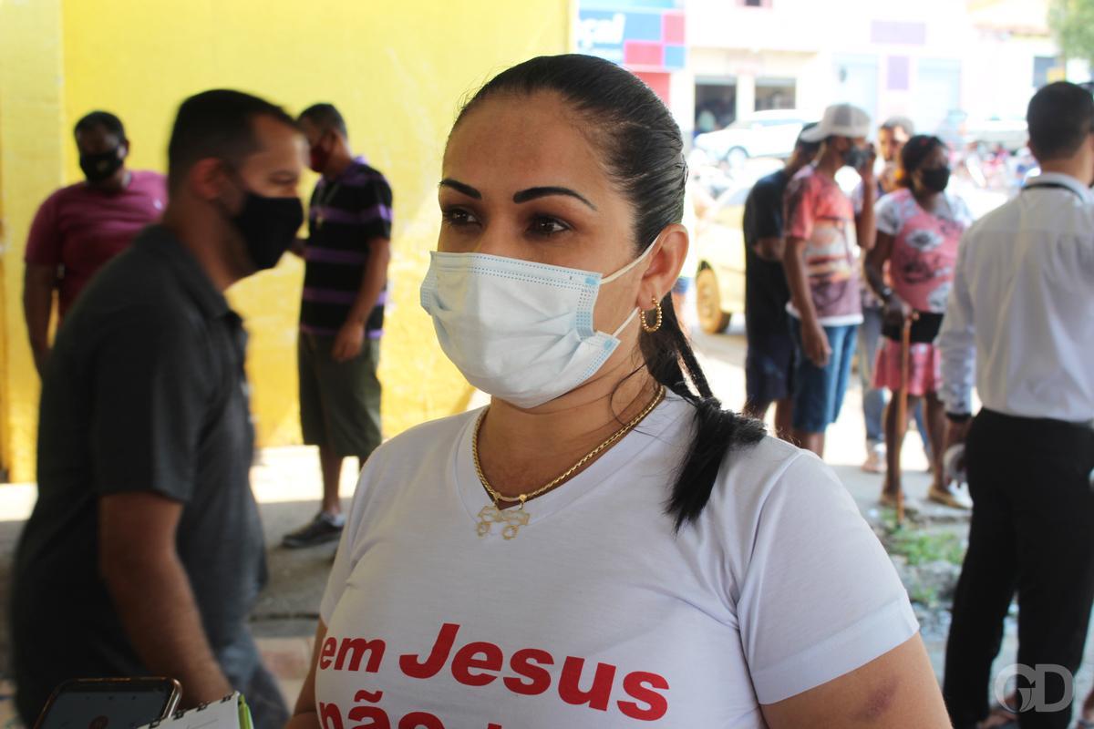 Ofília dos Santos, 63, mora na região do CPA 4 e enfrenta quase uma hora na viagem de ônibus para conseguir a doação. Ela vai todos os dias que têm doação, buscar os alimentos. Três pessoas moram na casa e o único que trabalha é o marido.