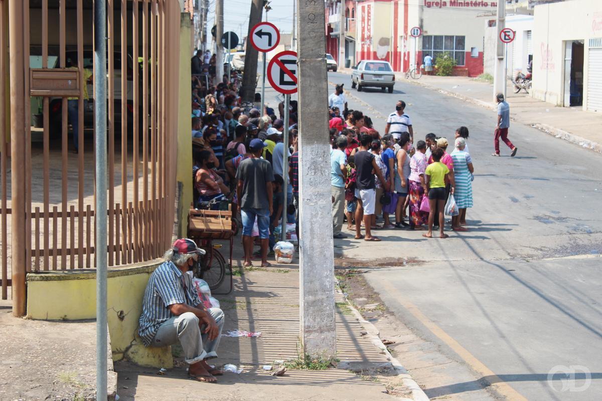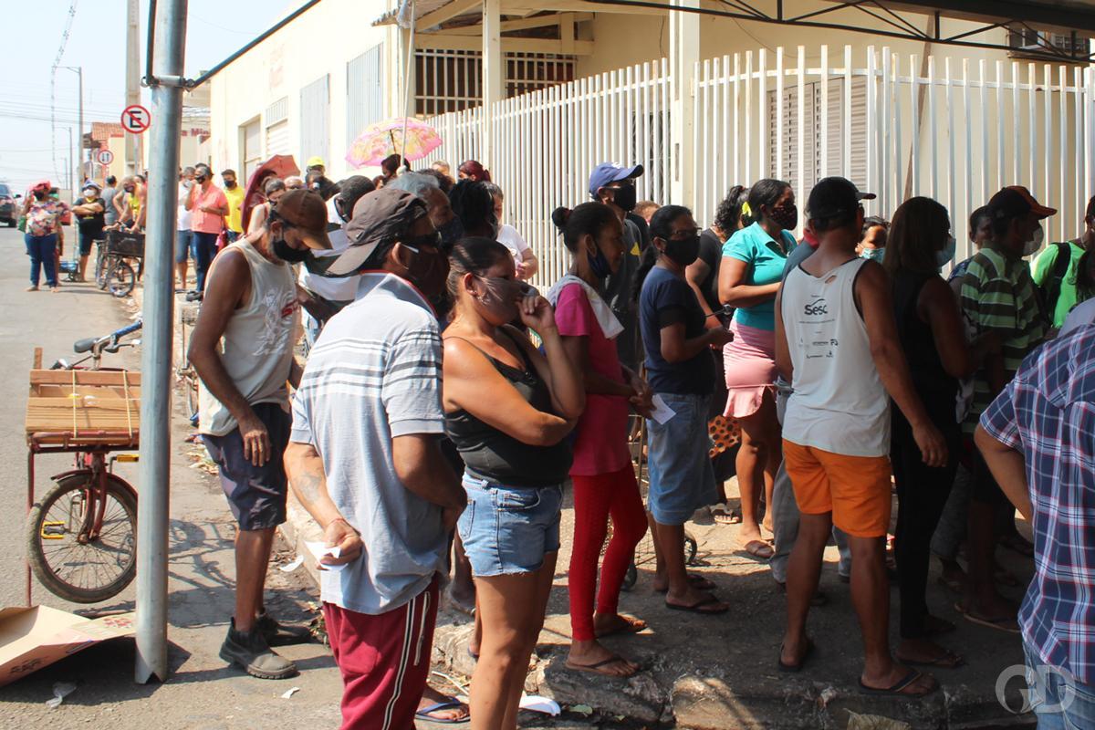 Para sanar a fome, centenas de pessoas esperam sob sol por horas para conseguir doação de alimentos, em Cuiabá. A cena virou uma rotina. Há meses um açougue ganhou notoriedade por doações de ossinhos e, desde então, a busca pelos alimentos só aumenta. Com a visibilidade, instituições passaram a ajudar.