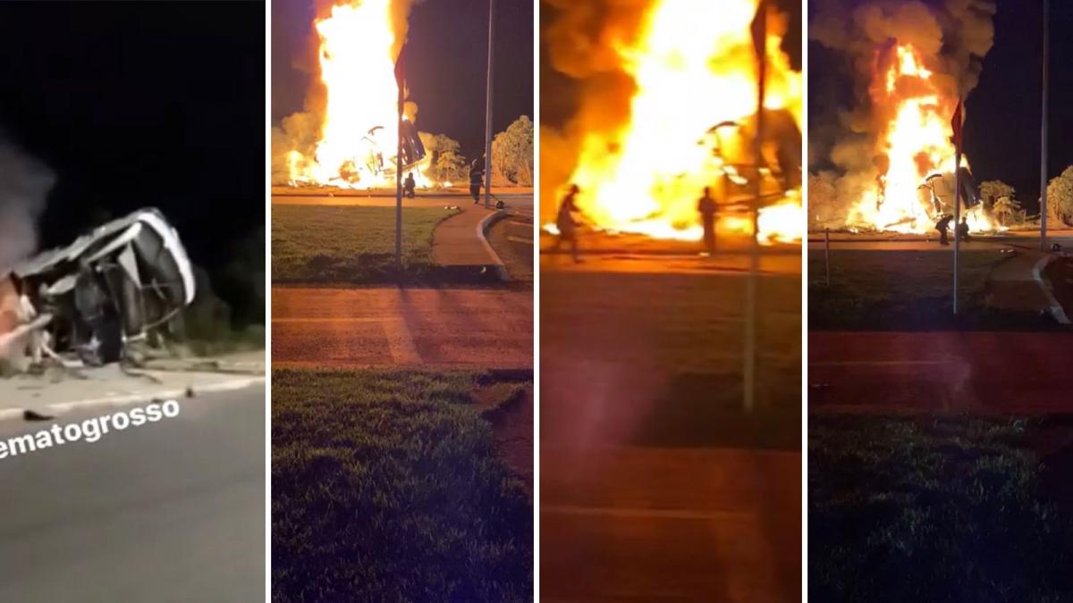 Leia também - Ônibus de viagem capota e pega fogo em Cuiabá; veja vídeo