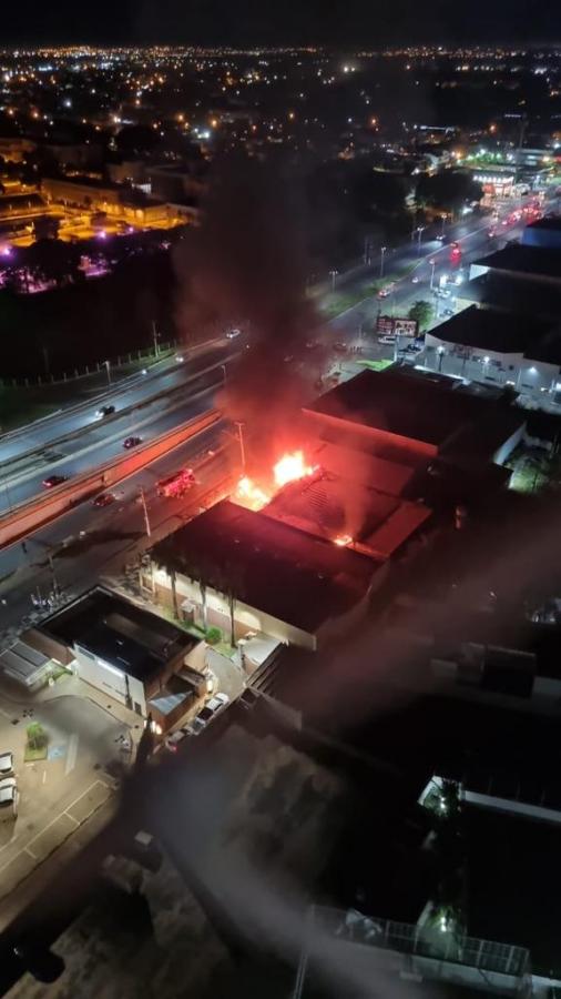 Nas imagens é possivel ver o empreendimento sendo consumido pelas chamas. Uma grande nuvem de fumaça foi registrada por populares e assustou moradores de edifícios vizinhos da região.