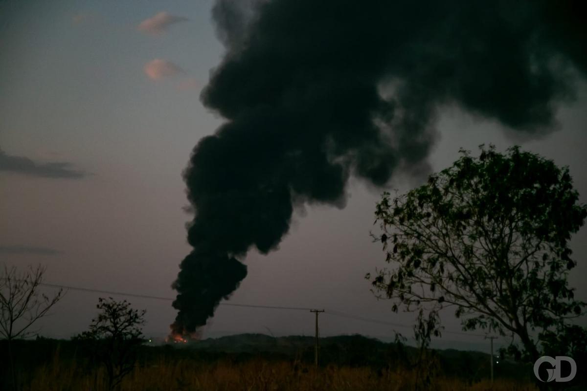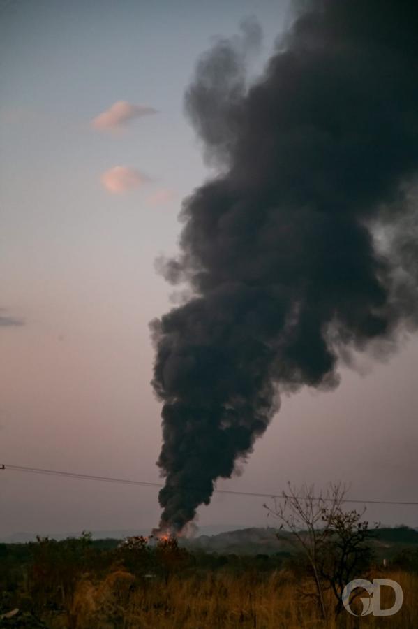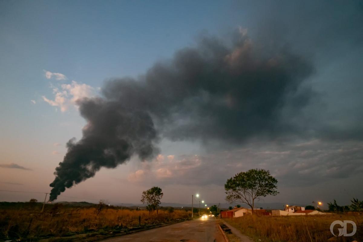 Incêndio no antigo lixão de Cuiabá, no bairro Jardim Vitória, mobilizou 5 equipes do Corpo de Bombeiros no final da tarde desta segunda-feira (7). Imagens feitas próximas ao local mostram que uma densa cortina de fumaça escura se formou por conta do fogo.