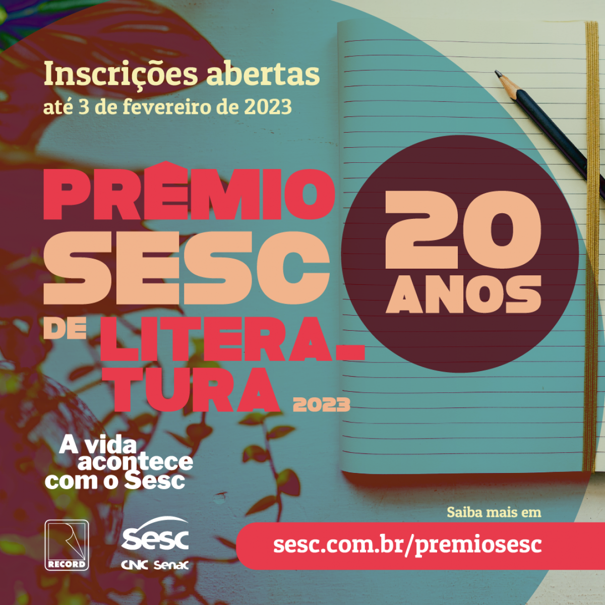 O Prêmio Sesc de Literatura está com inscrições abertas para sua 20ª edição. Podem concorrer, autores com obras inéditas nas categorias Romance e Conto. Os interessados têm até 3 de fevereiro, às 18h, para concluir o processo de inscrição, que é gratuito e online. O regulamento completo está disponível em www.sesc.com.br/premiosesc.