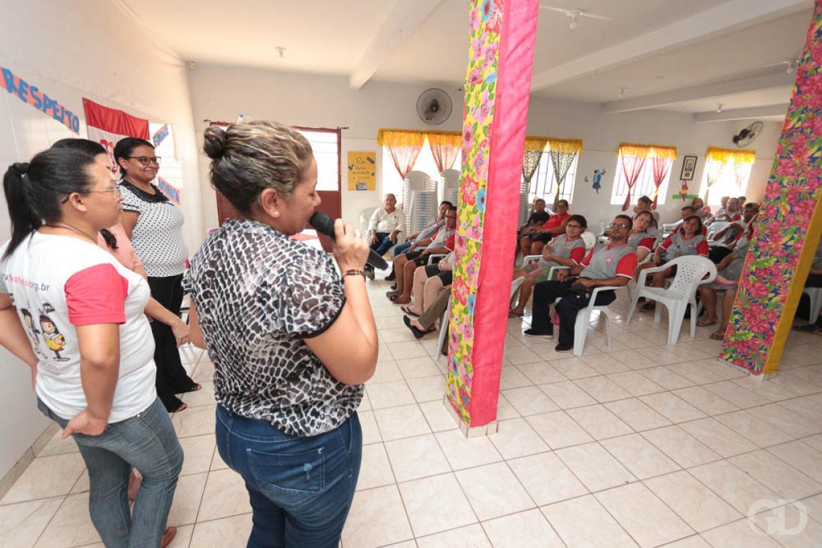 Na sala com cortinas de chita, os alunos da instituição assistem a uma oficina, em comemoração ao dia 21 de setembro, que celebra o Dia Nacional da Luta da Pessoa com Deficiência. Quando ouvem a data, todos batem palma e gritam, orgulhosos.