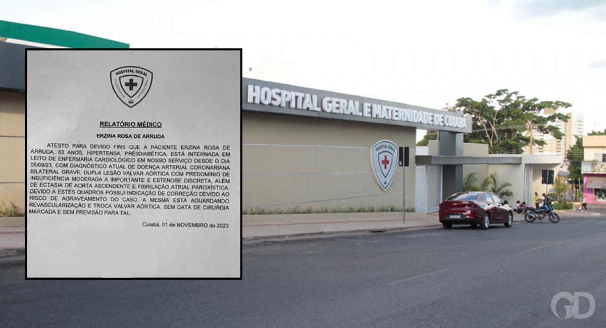 Atualizada - Erzina Rosa Santana, 63, está há dois meses internada no leito cardiológico do Hospital Geral de Cuiabá aguardando pela cirurgia de Ponto de Safena. A paciente, que já realizou todos os exames preparatórios, está correndo risco de vida por conta na demora do procedimento - que pode piorar o seu quadro de saúde.
