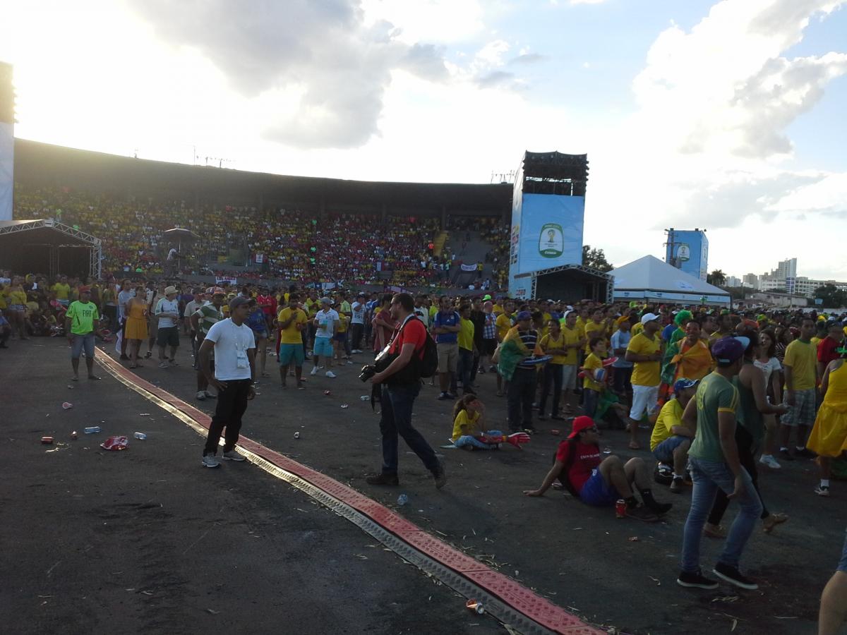 Na avaliação de Guimarães, o primeiro de dia de atividades no Fan Fest foi extremamente positivo. “Tudo ocorreu dentro da concepção, do que foi planejado, um local para as pessoas se reunirem, assistir aos jogos e confraternizar. Espero que continue assim pelos próximos dias”, pontou o secretário. O espaço foi projetado para comportar 30 mil pessoas. Após o término do 1º tempo do jogo, a Polícia Militar apontou uma média de 13 mil pessoas no local e depois que acabou a partida, houve uma nova avaliação quanto ao público, quando a estimativa de pessoas no local subiu para 17 mil.