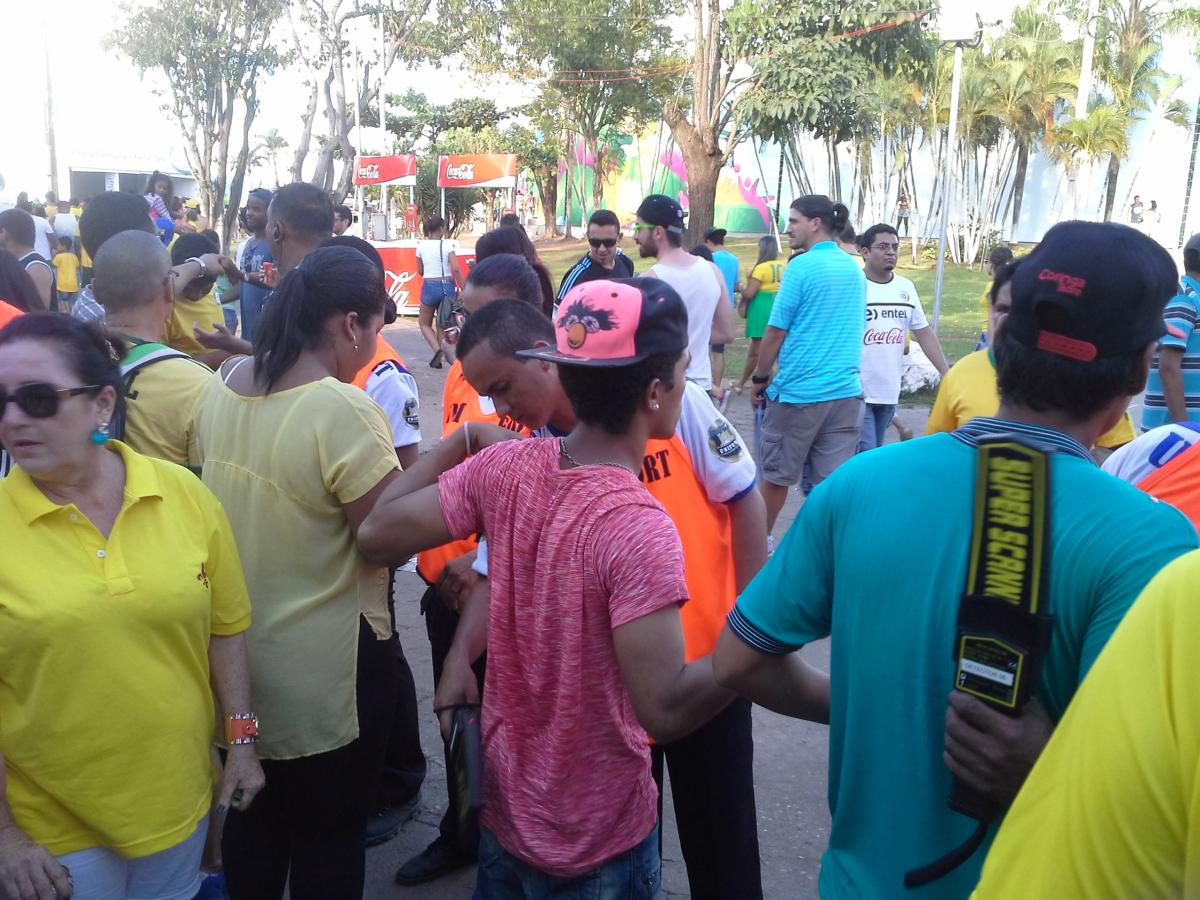 Segurança - De acordo com Maurício Guimarães, 200 seguranças particulares trabalharam no evento, dentro do Fan Fest, além de outros 40 policiais militares que também estavam presentes na parte interna. Fora fo Fan Fast, também havia policiais em locais estratégicos para garantir a segurança de quem chegava e saia do local. Logo na entrada também tinham esquipes compostas por homens e mulheres realizando uma rápida revista pessoal nas pessoas que chegavam. O intuito era evitar que torcedores entrassem armados no local.