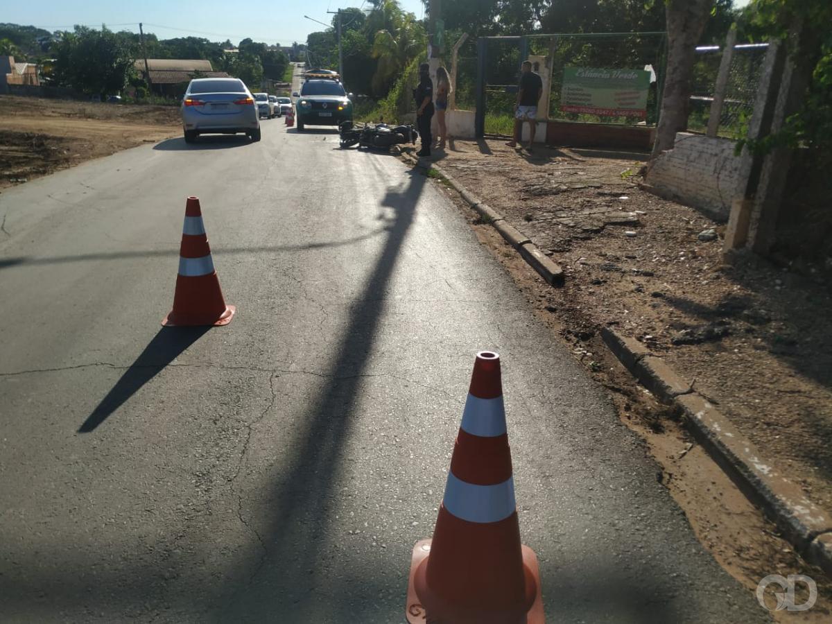 O jovem Thiago Medeiros Rocas dos Santos, 28 anos, bateu a motocicleta que pilotava, modelo Hornet, contra um poste, na rua Ceará, em Várzea Grande. Desacordado, ele foi levado às pressas ao pronto-socorro da cidade em estado grave.