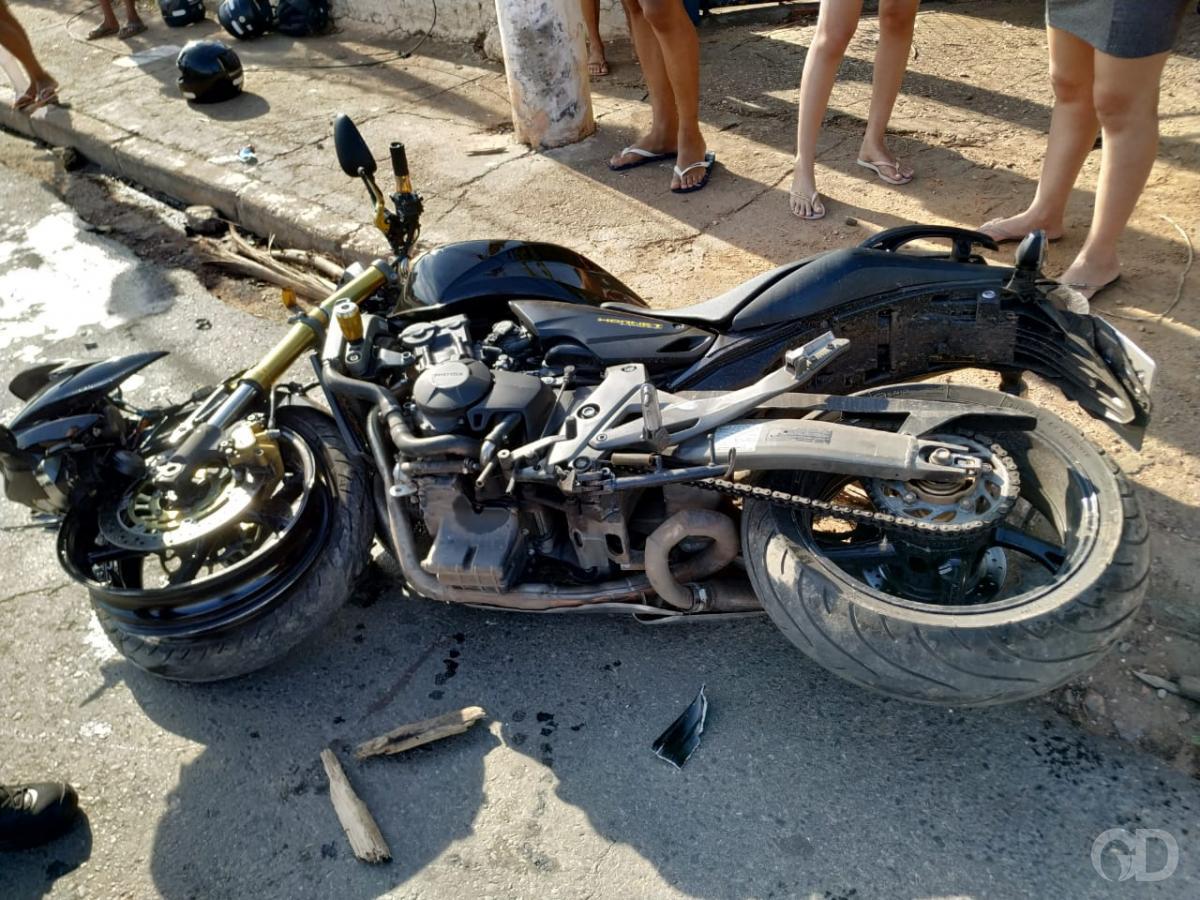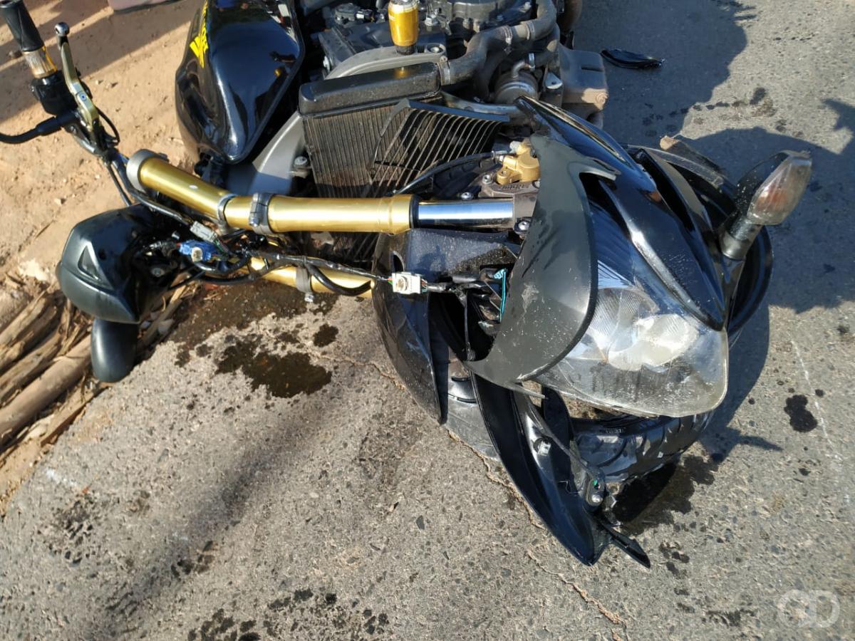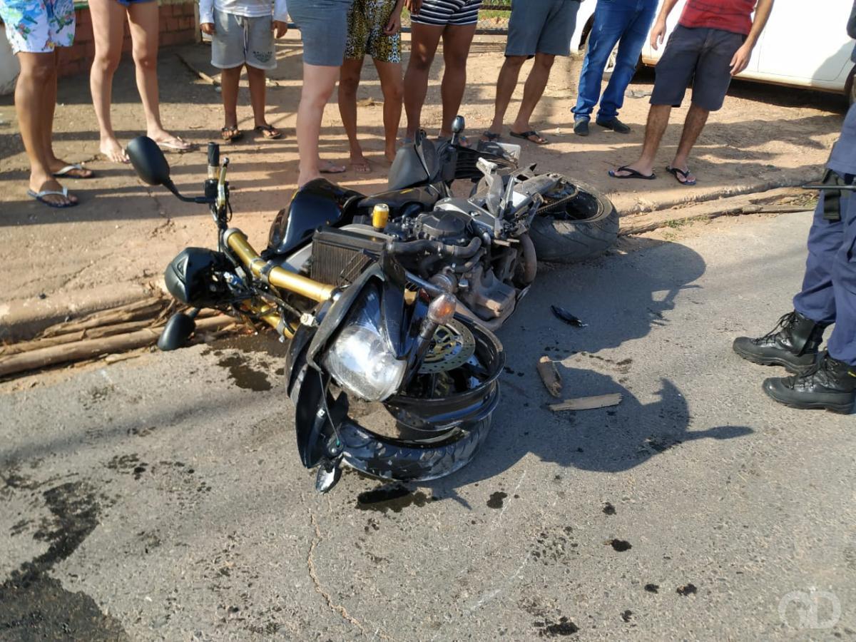 O jovem foi levado às pressas em estado grave ao hospital após bater sua motocicleta, modelo Hornet, na tarde deste sábado (20), na rua Ceará.