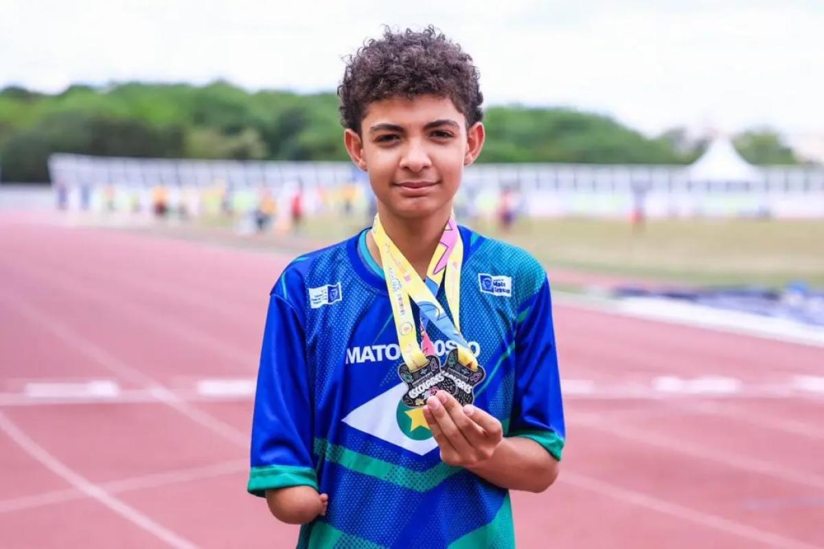 Gabriel Vitor Moura dos Santos, 12, foi um dos destaques das Paralimpíadas Escolares 2024, realizadas pelo Comitê Paralímpico Brasileiro (CPB), no Centro de Treinamento Paralímpico, em São Paulo. Natural de Cuiabá, Gabriel conquistou duas medalhas de prata no atletismo (60m e nos 100m).
