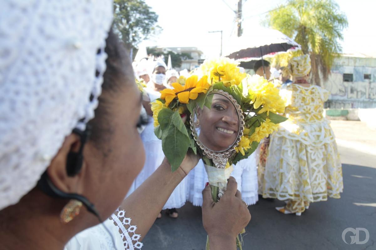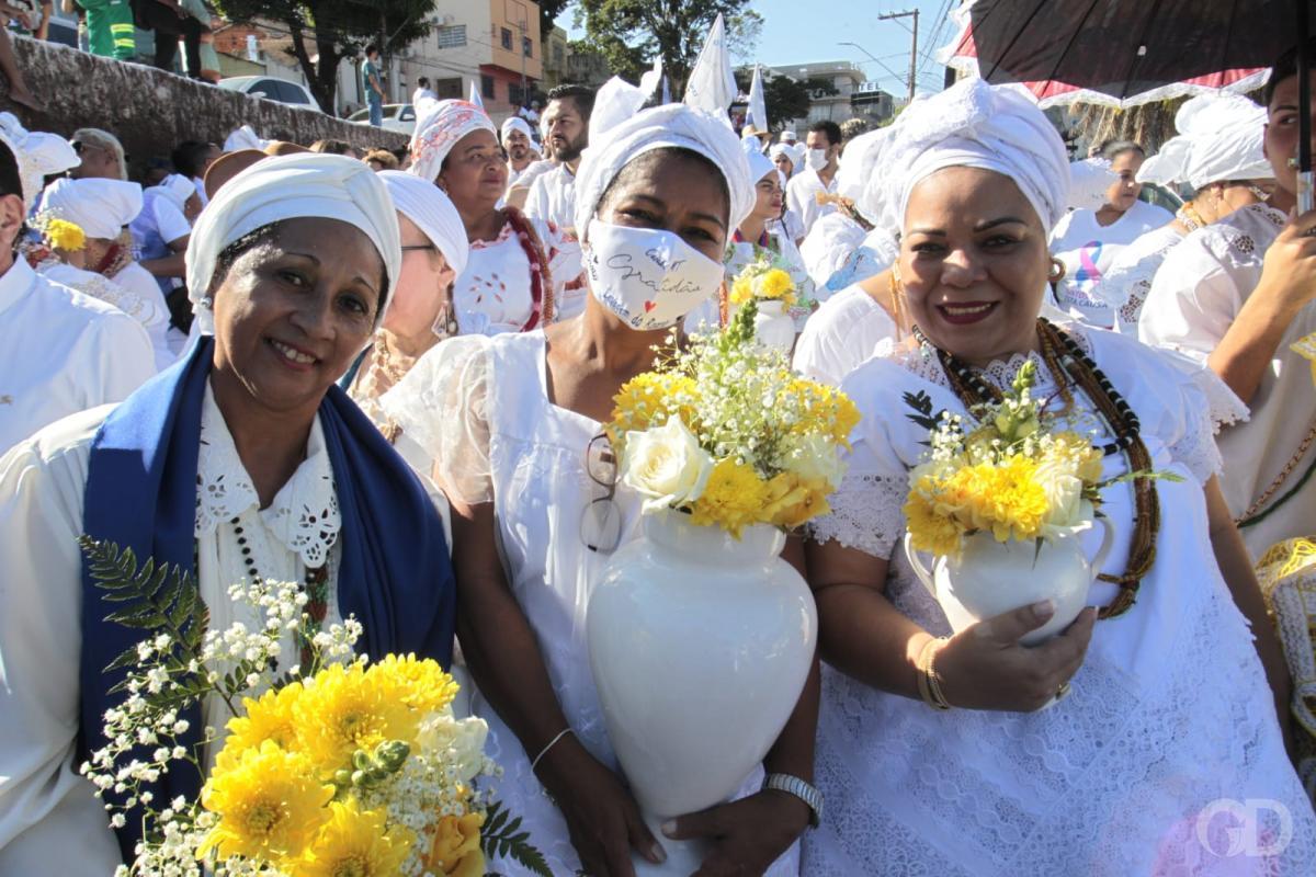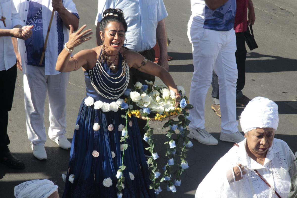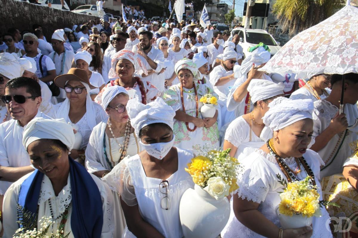 As mães de santo seguiram na frente com as ‘quartinhas’ enfeitadas com flores, dançando e cantando. Muitos carregavam bandeiras com mensagem de paz. Todos vestidos de branco, com colares e outros objetos que remetem às religiões de matriz africana. Pombas brancas foram soltas simbolizando a paz.