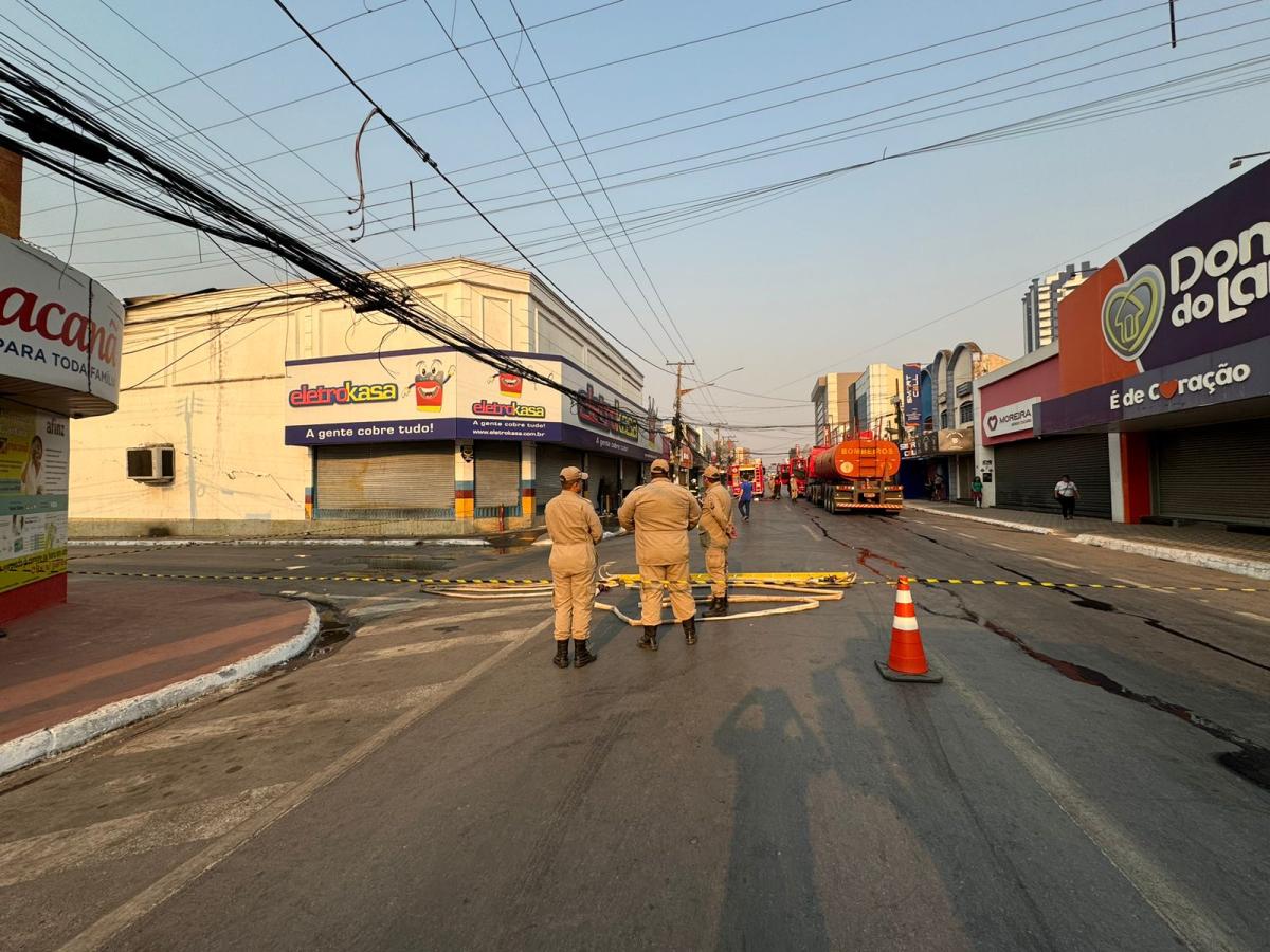 Loja de eletrodomésticos Eletrokasa foi destruída pelo fogo, na madrugada desta quarta-feira (11), na avenida Couto Magalhães, em Várzea Grande. Apesar dos danos, não houve feridos.